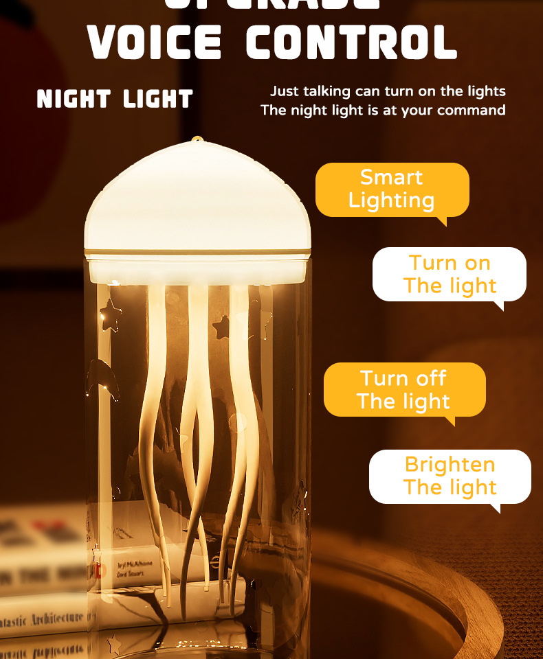 지능형 해파리 램프, 음성 제어 플로팅 장식품, 발광 분위기 램프, 야간 조명, 침대 옆 장식, 여자친구 선물 아이디어