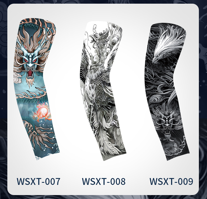 의자형 문신 자외선 차단 아이스 슬리브 야외 사이클링 통기성 스포츠 팔토시 중국풍 꽃무늬 문신 무봉제 슬리브