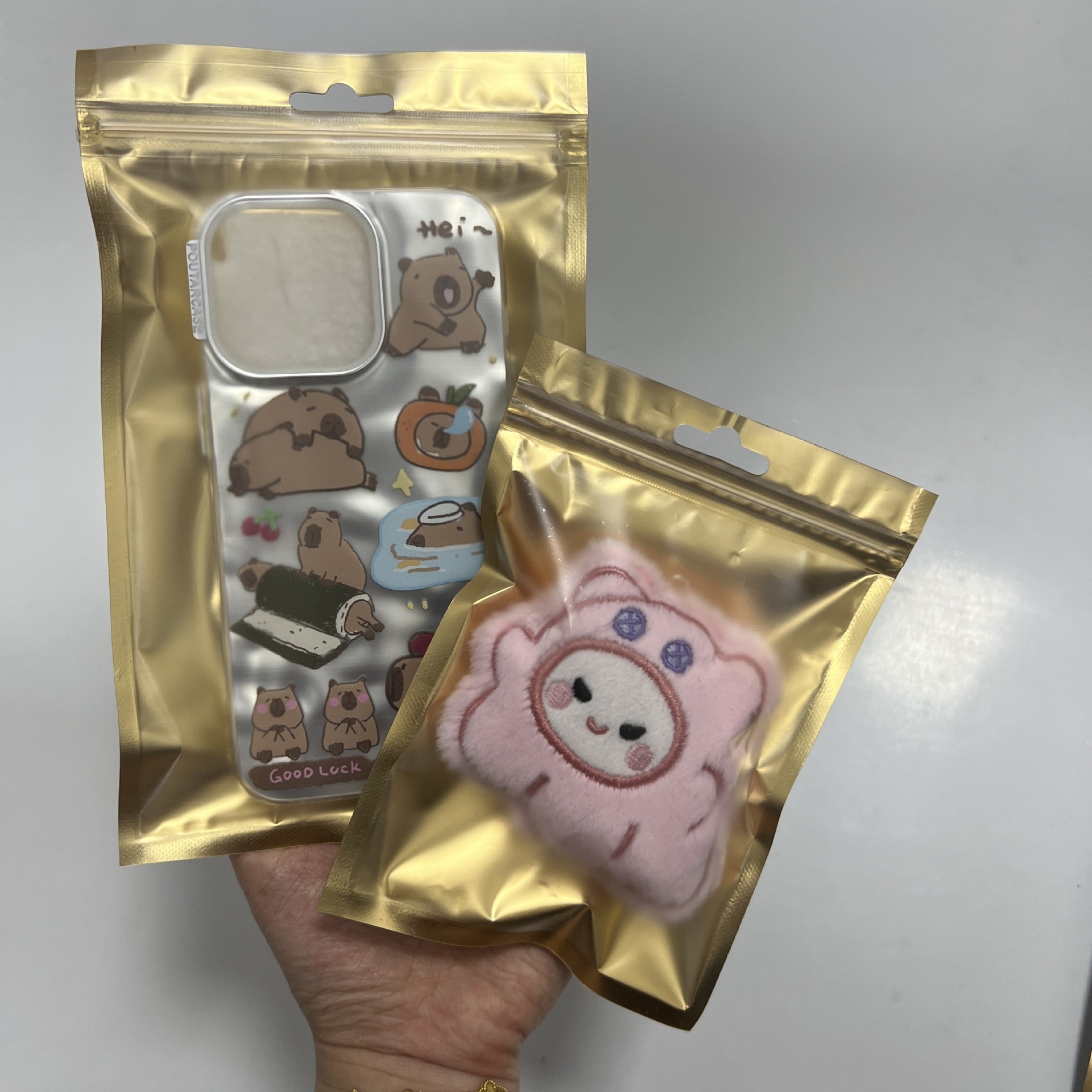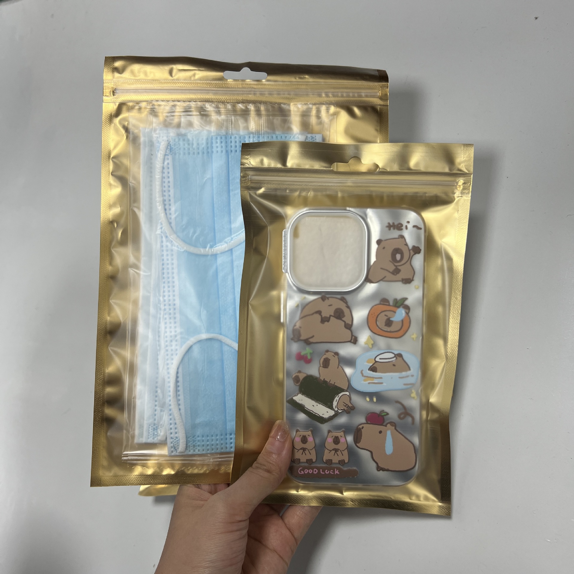 "재고" 황금 젖빛 매트 골드 자체 밀봉 가방 일상 용품 장식 하드웨어 휴대 전화 쉘 포장 가방