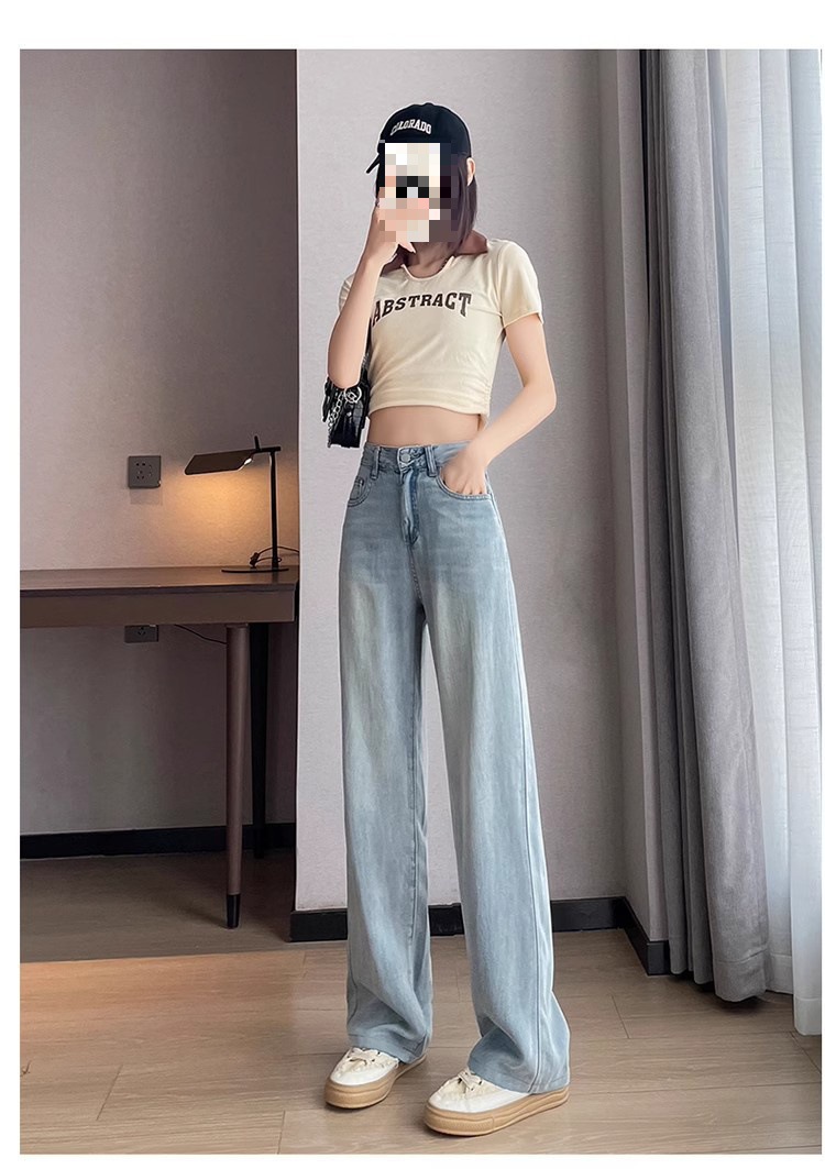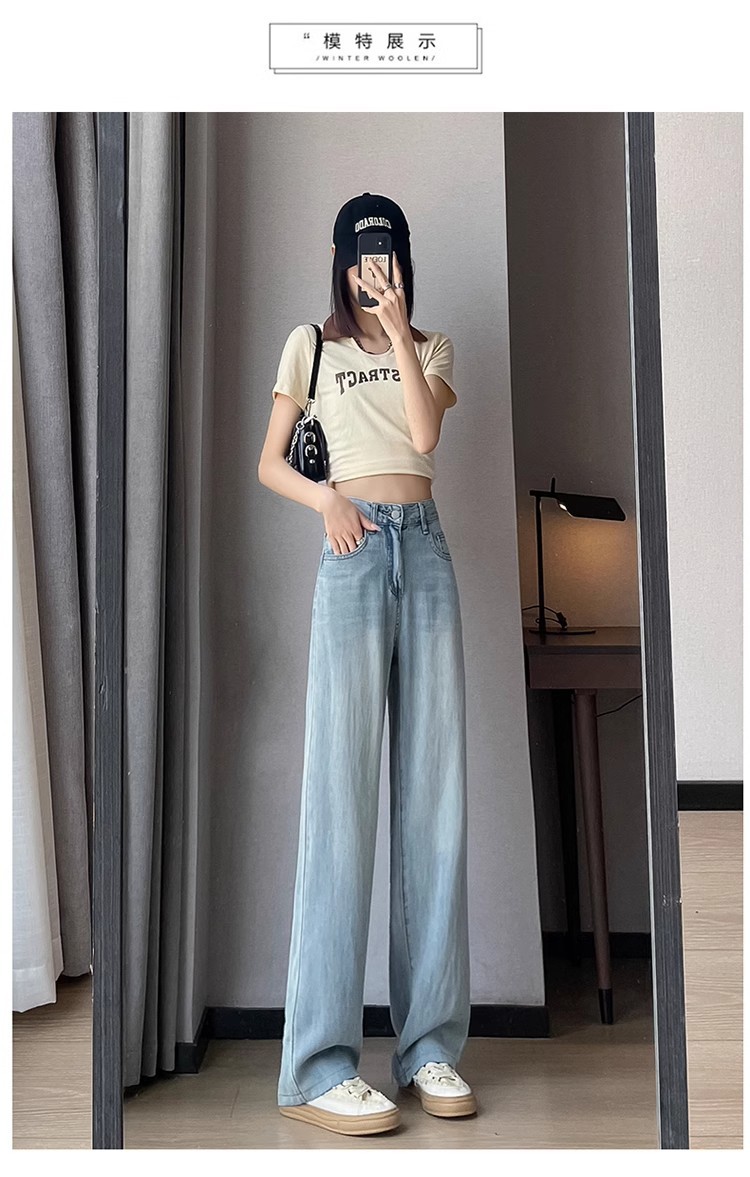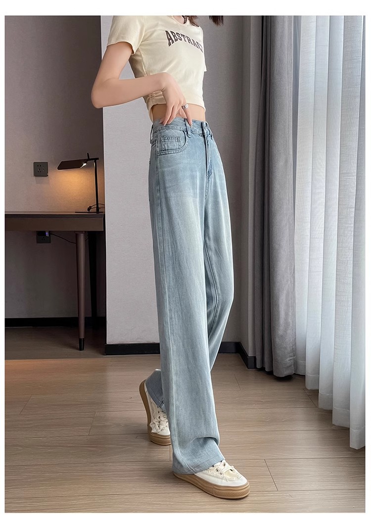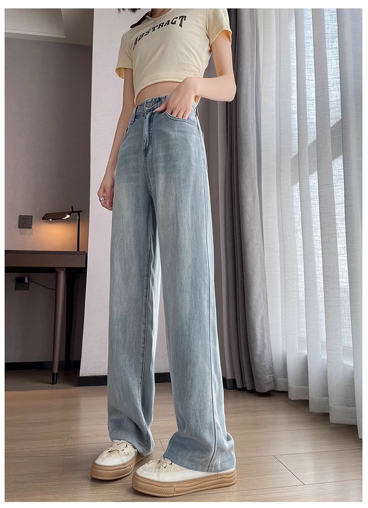 아이스 실크 청바지 여성의 얇은 2024 새로운 도착 안티-주름 텐셀 바지 여름 여성용 높은 허리 좁은 버전 스트레이트 튜브스토어 가기