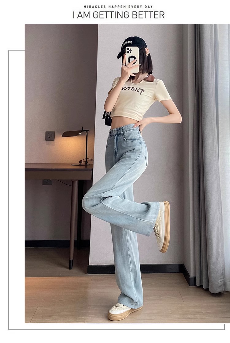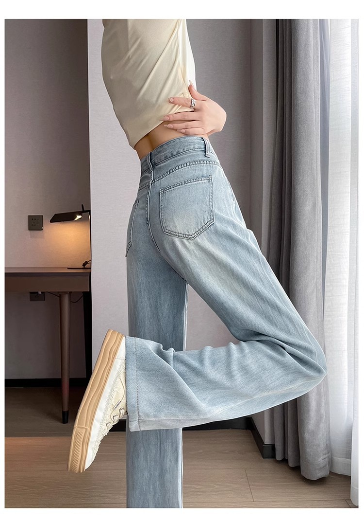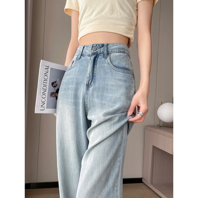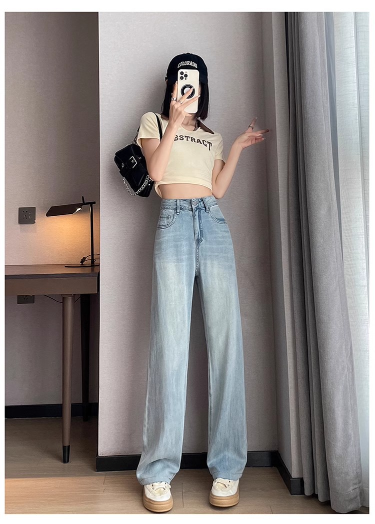 아이스 실크 청바지 여성의 얇은 2024 새로운 도착 안티-주름 텐셀 바지 여름 여성용 높은 허리 좁은 버전 스트레이트 튜브스토어 가기
