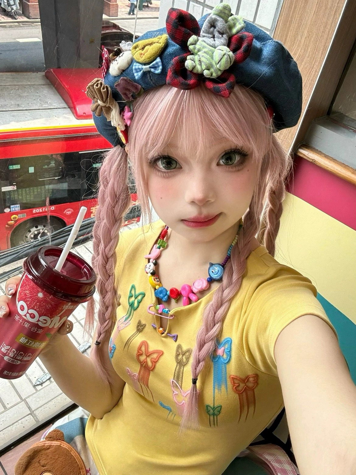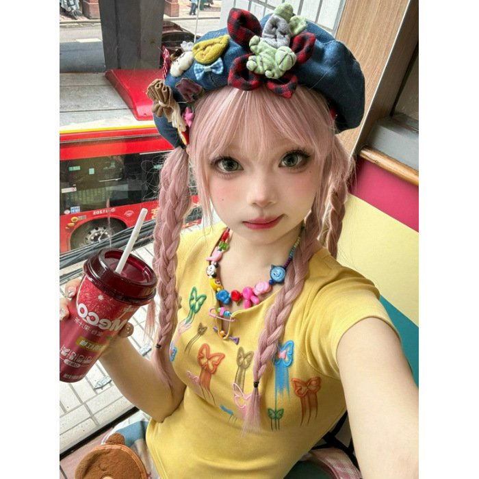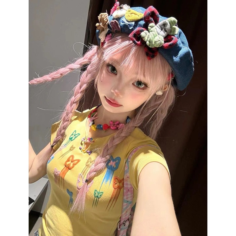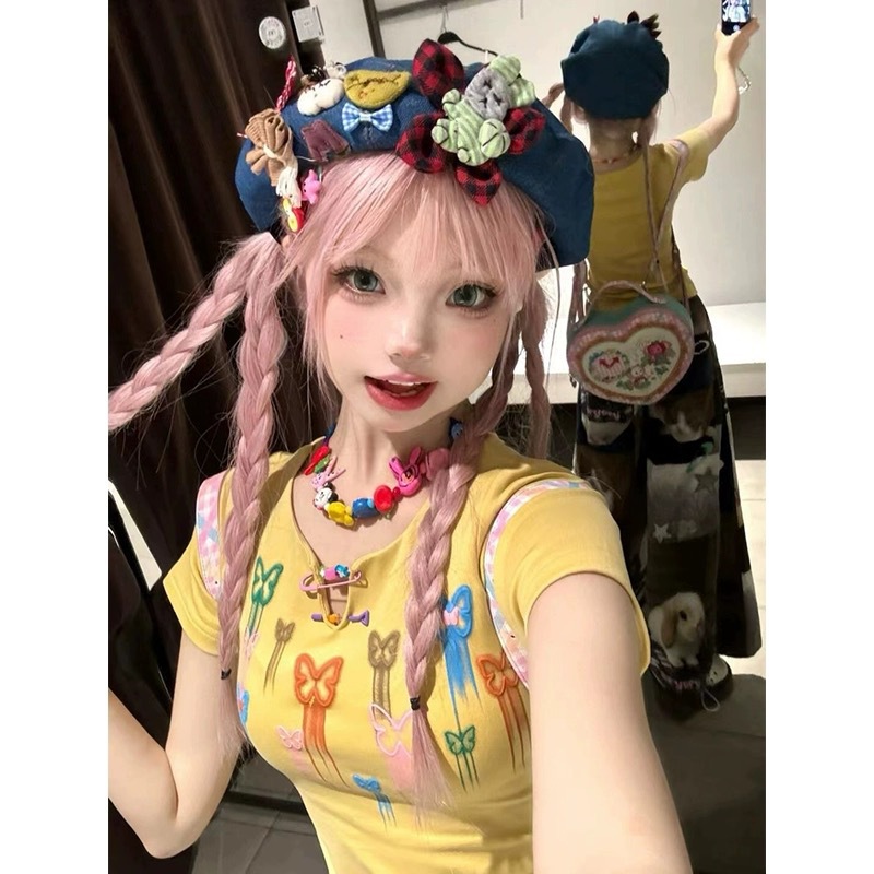 여름 도파민 티셔츠 여성의 여름 나비 인쇄 어깨 반팔 디자인 센스 틈새 쇼트 탑 Ins스토어 가기
