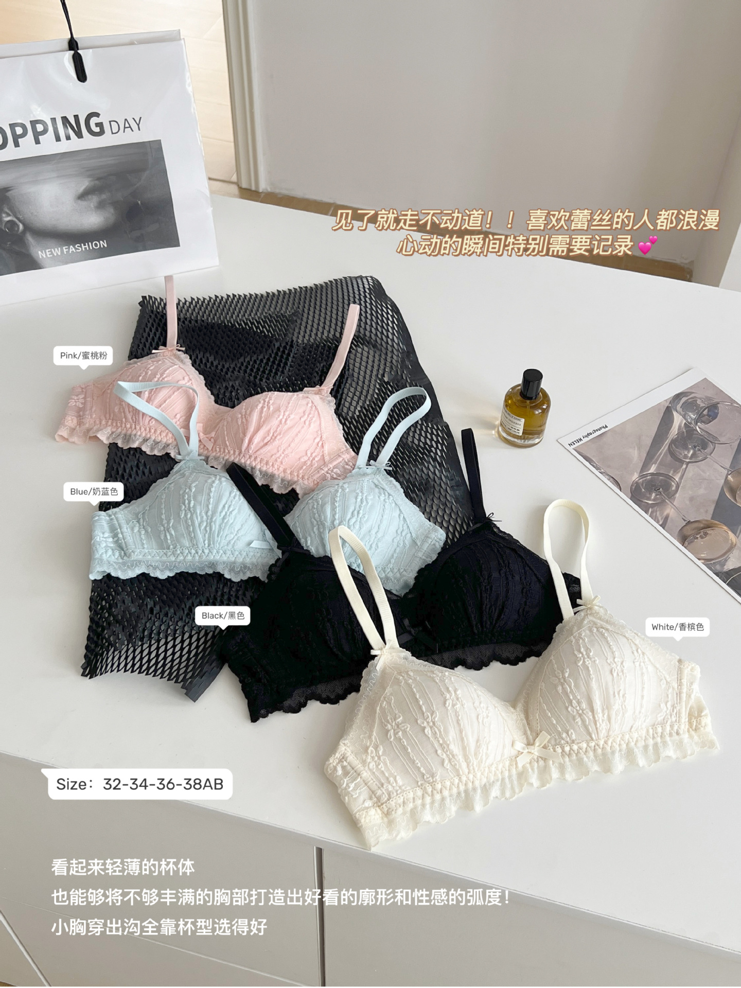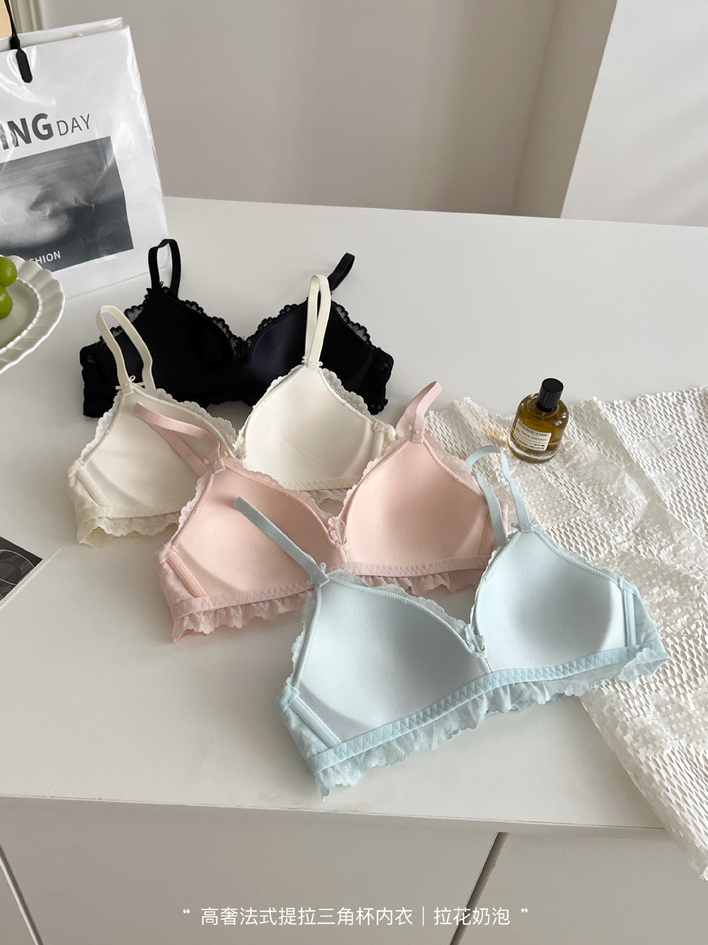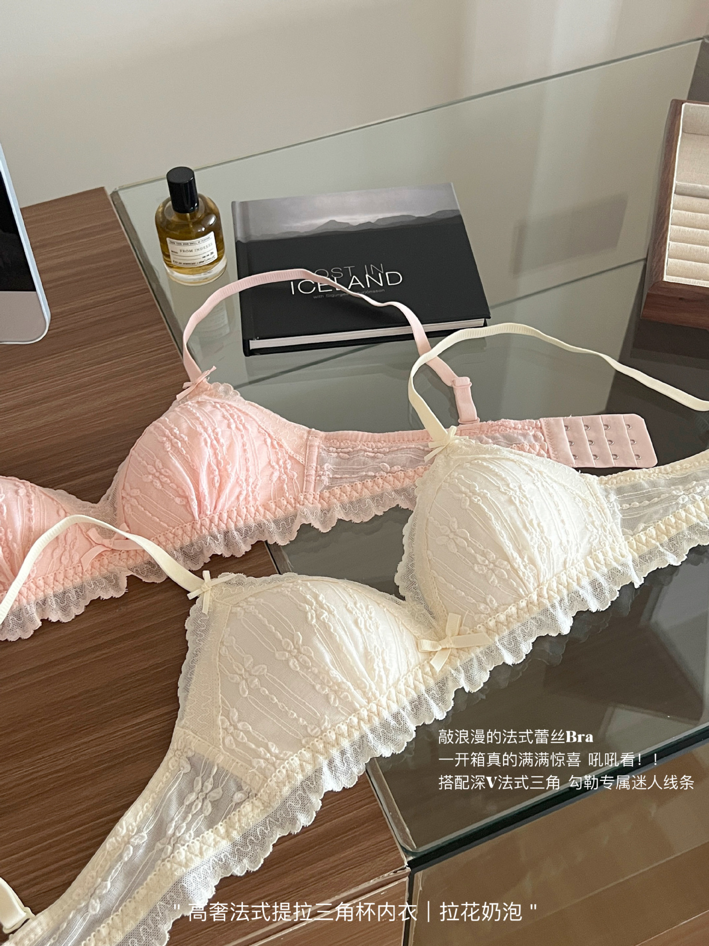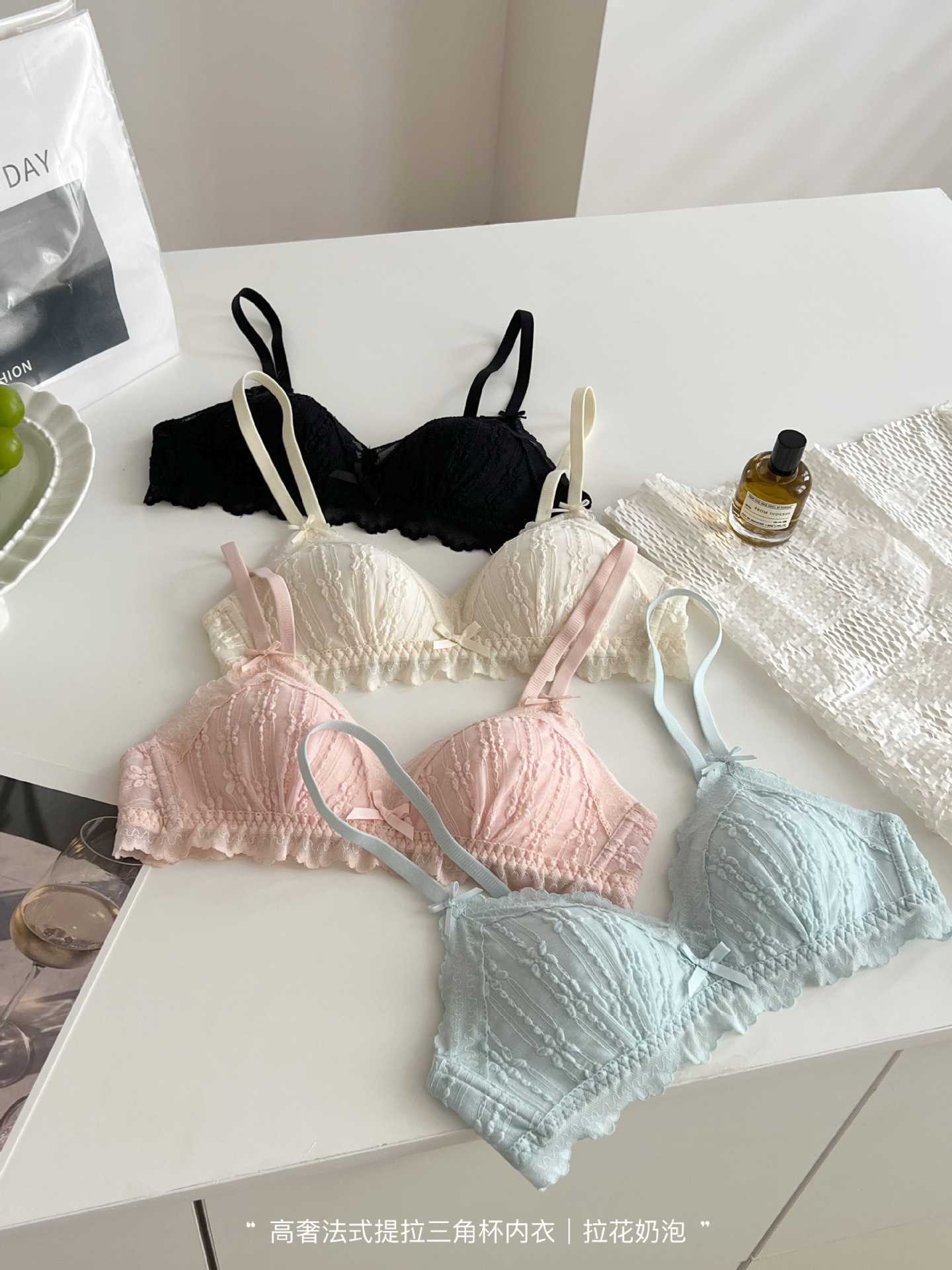 봄과 여름 새로운 소녀의 레이스 아름다운 뒤로 얇은 프랑스 스타일 큰 가슴은 작은 몸매 작은 가슴 푸시 업 속옷 브래지어를 보여줍니다