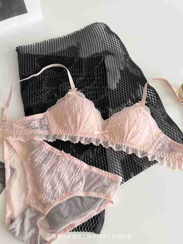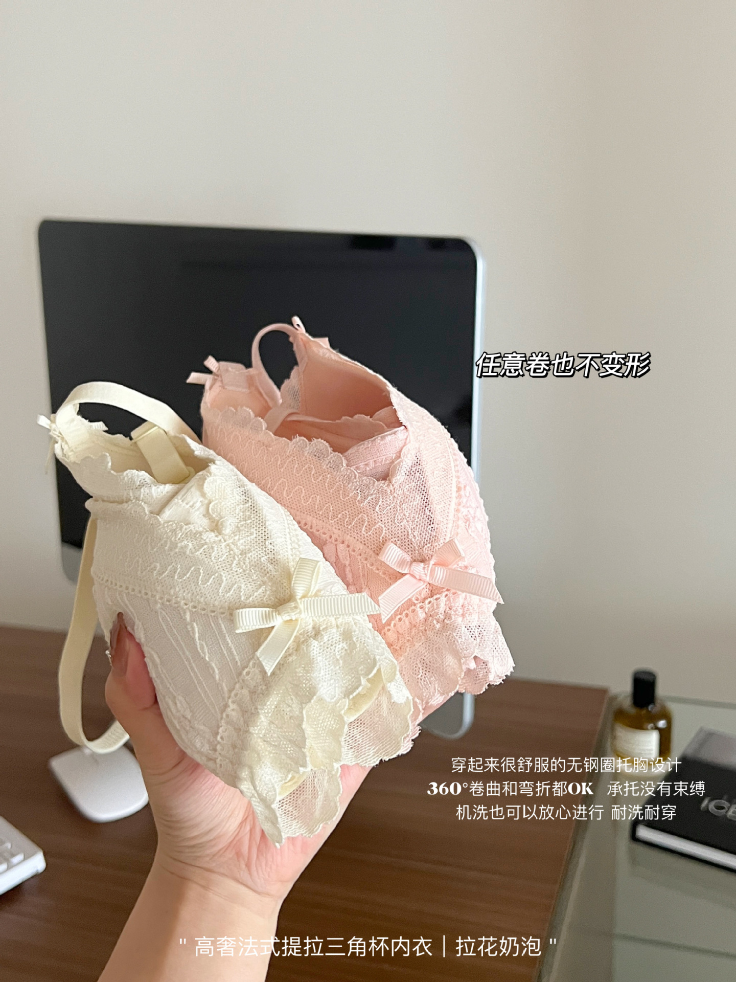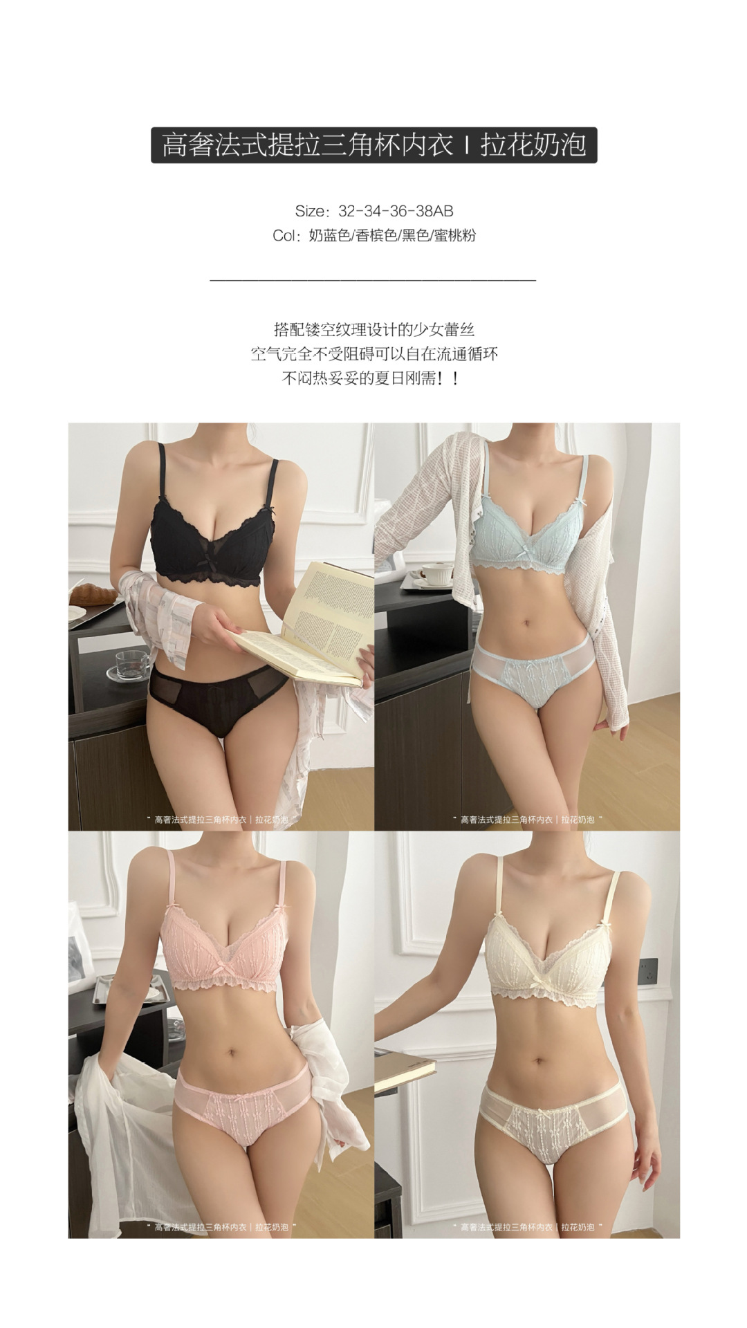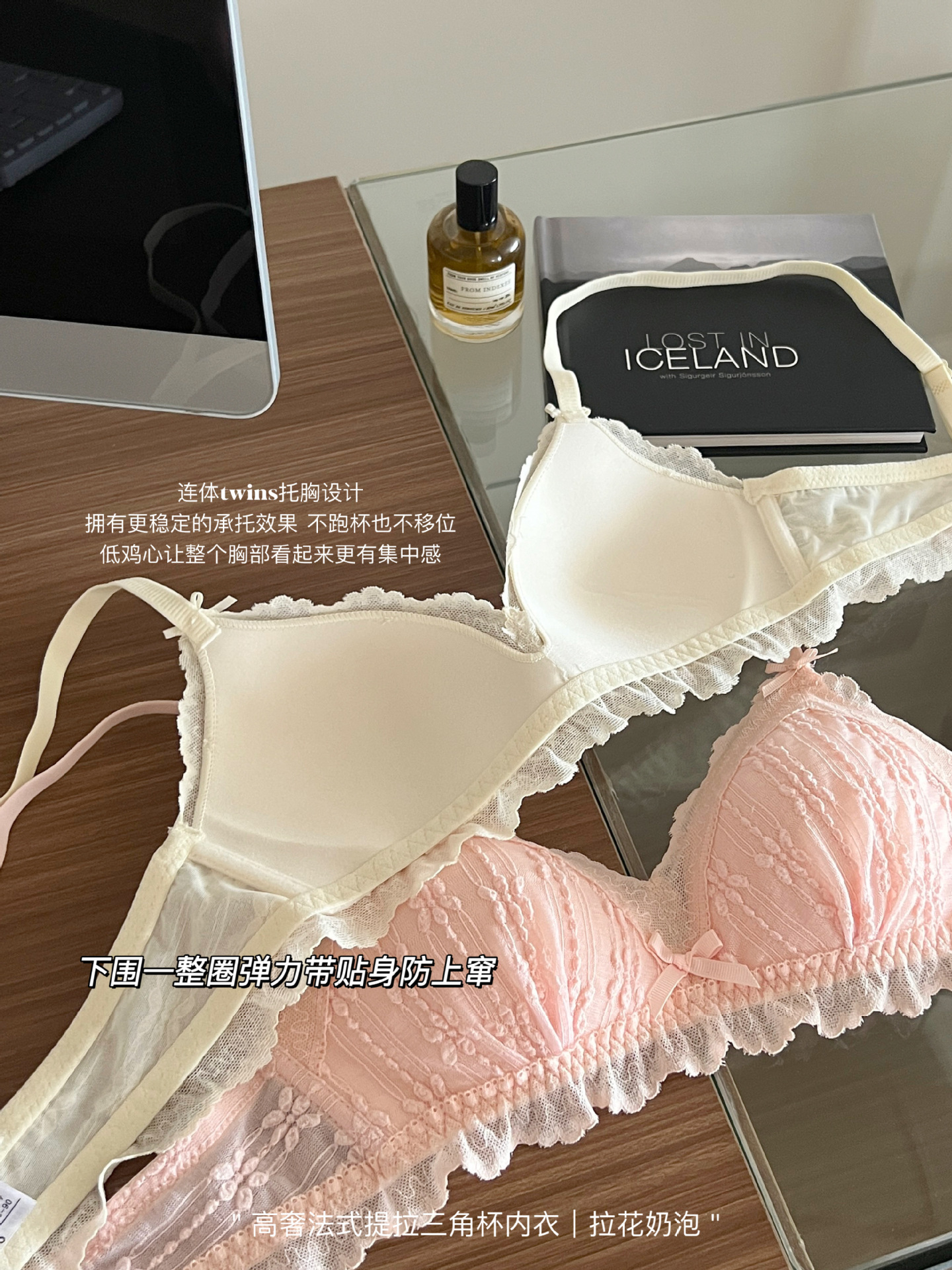 봄과 여름 새로운 소녀의 레이스 아름다운 뒤로 얇은 프랑스 스타일 큰 가슴은 작은 몸매 작은 가슴 푸시 업 속옷 브래지어를 보여줍니다
