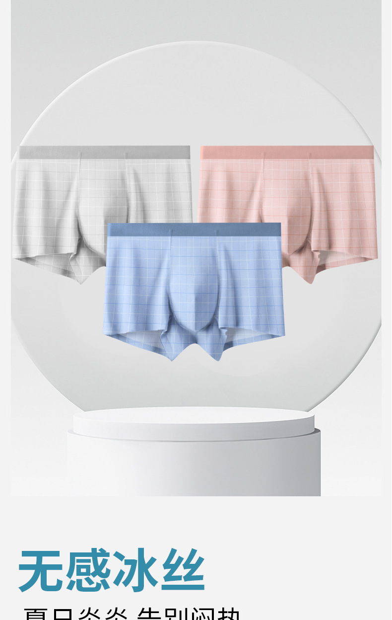 여름 남성용 속옷 무봉제 아이스 실크 사각팬티 항균 통기성 중간 허리 빠른 건조 공장 도매 통기성 빠른 건조스토어 가기
