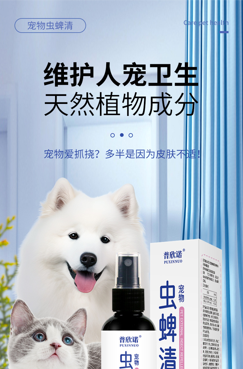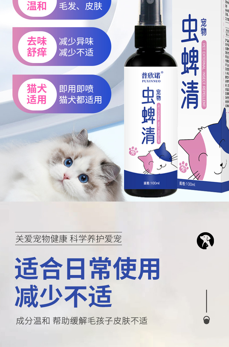 Puxinuo 진드기 스프레이 개와 고양이 벼룩 스프레이 진드기 클립 외부 스프레이 진드기 스프레이 도매