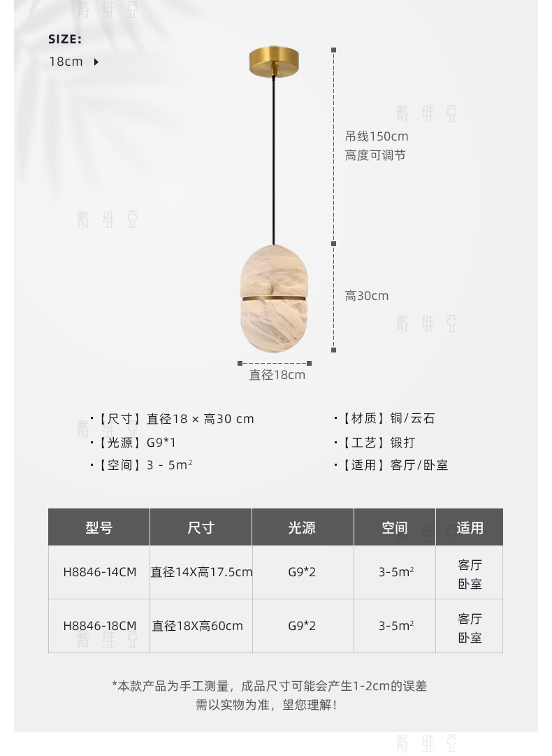국경 간 스페인 천연 대리석 북유럽 창조적 인 성격 마스터 침실 침대 옆 작은 샹들리에 디자이너 레스토랑 바