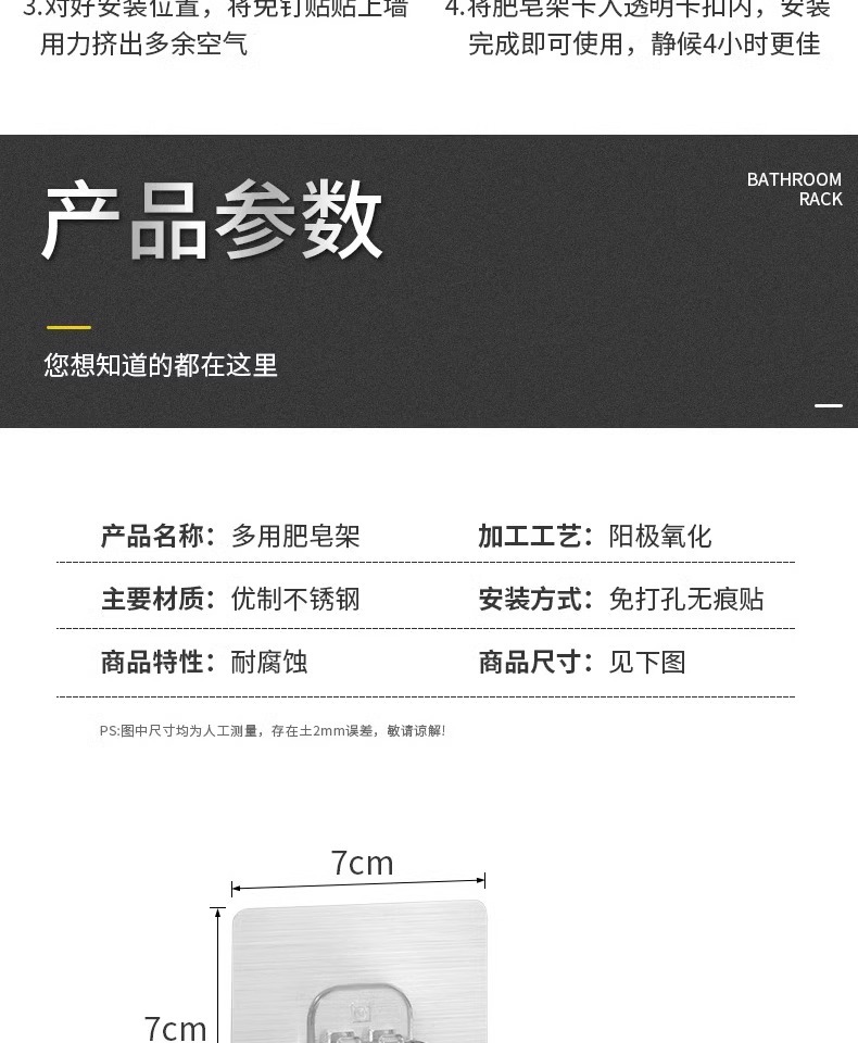 • 1 스테인레스 스틸 비누 홀더 [펀치 프리 설치] 투명 스티커
