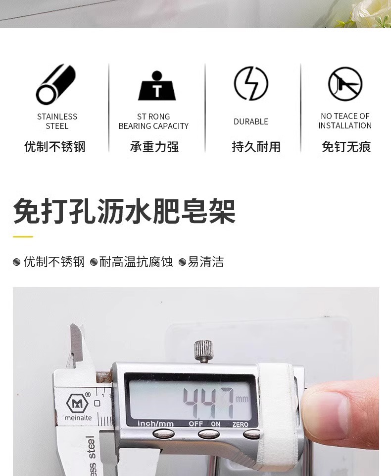 • 1 스테인레스 스틸 비누 홀더 [펀치 프리 설치] 실버 스티커