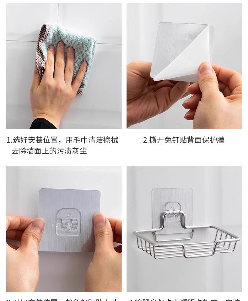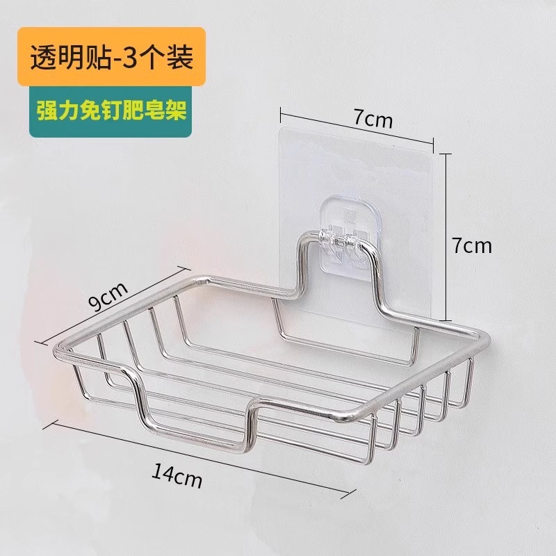 • 3 스테인레스 스틸 비누 홀더 [펀치 프리 설치] 투명 스티커