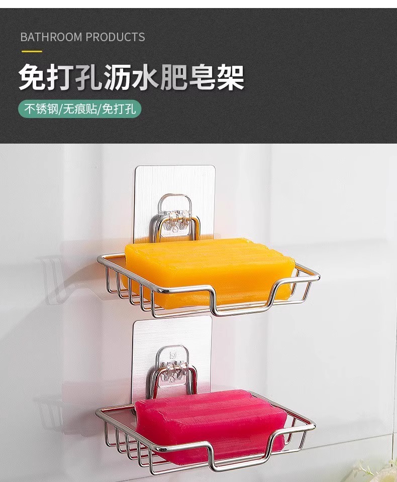 스테인레스 스틸 펀치없는 가정용 비누 랙 배수 비누 상자 기숙사 욕실 벽걸이 형 흡입 컵 성격