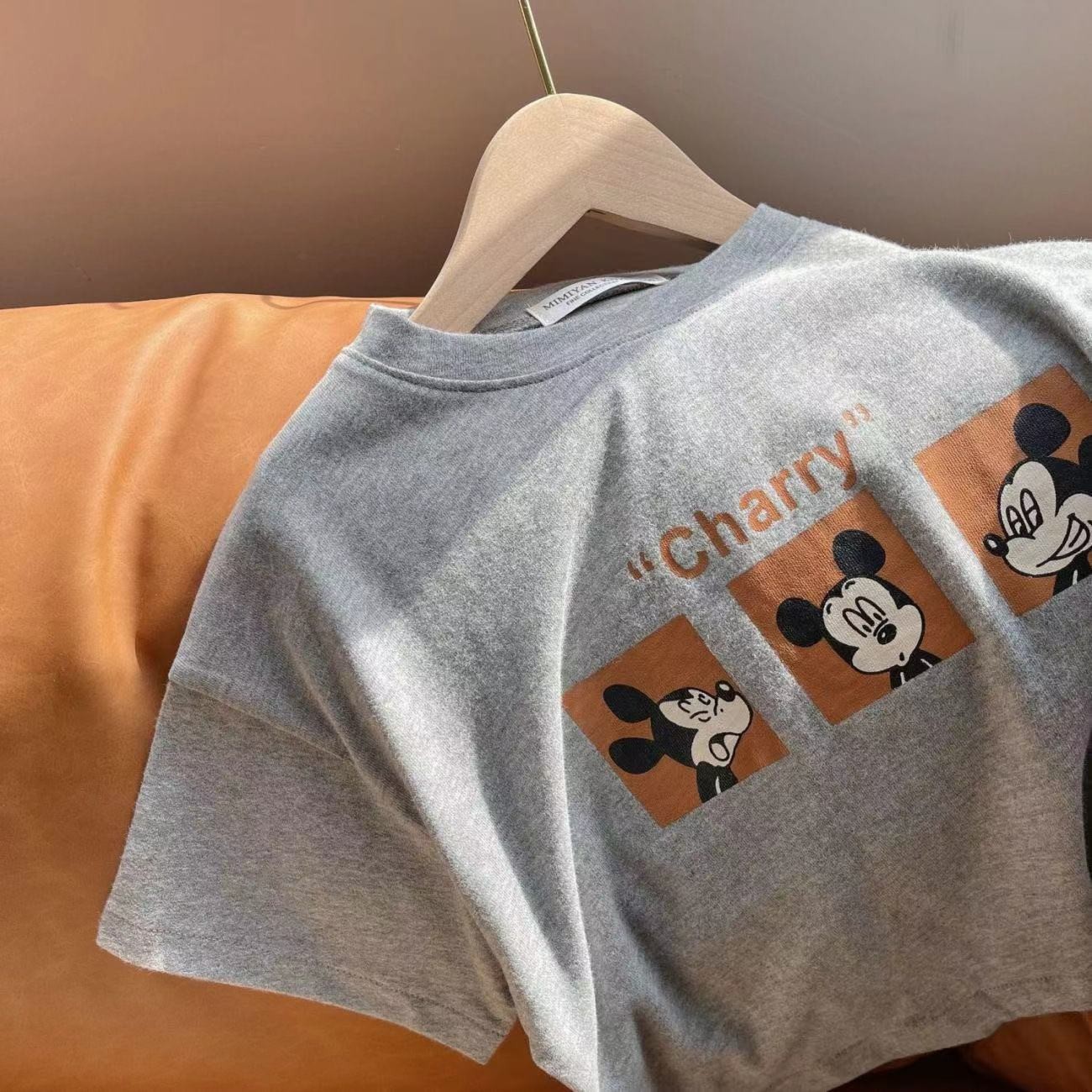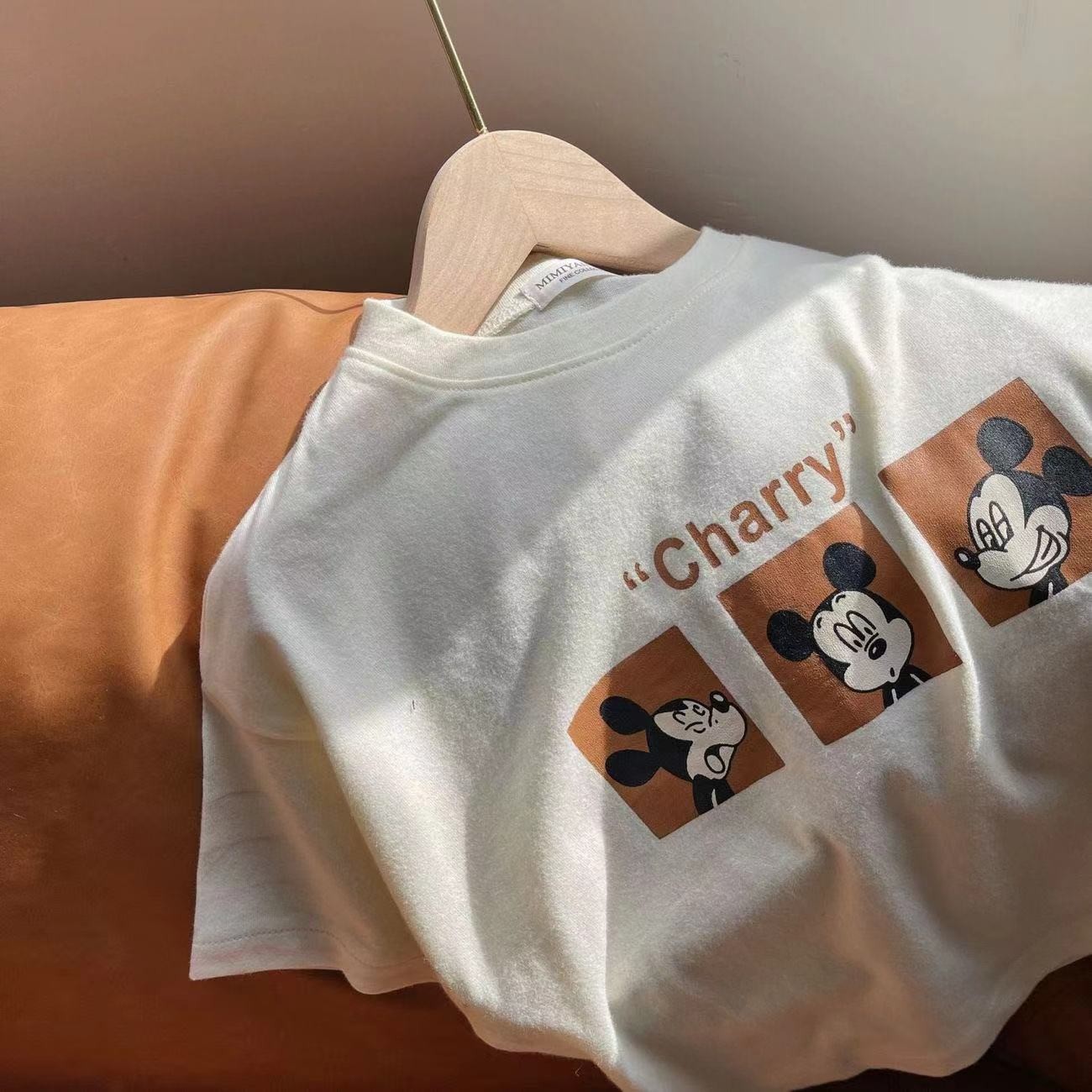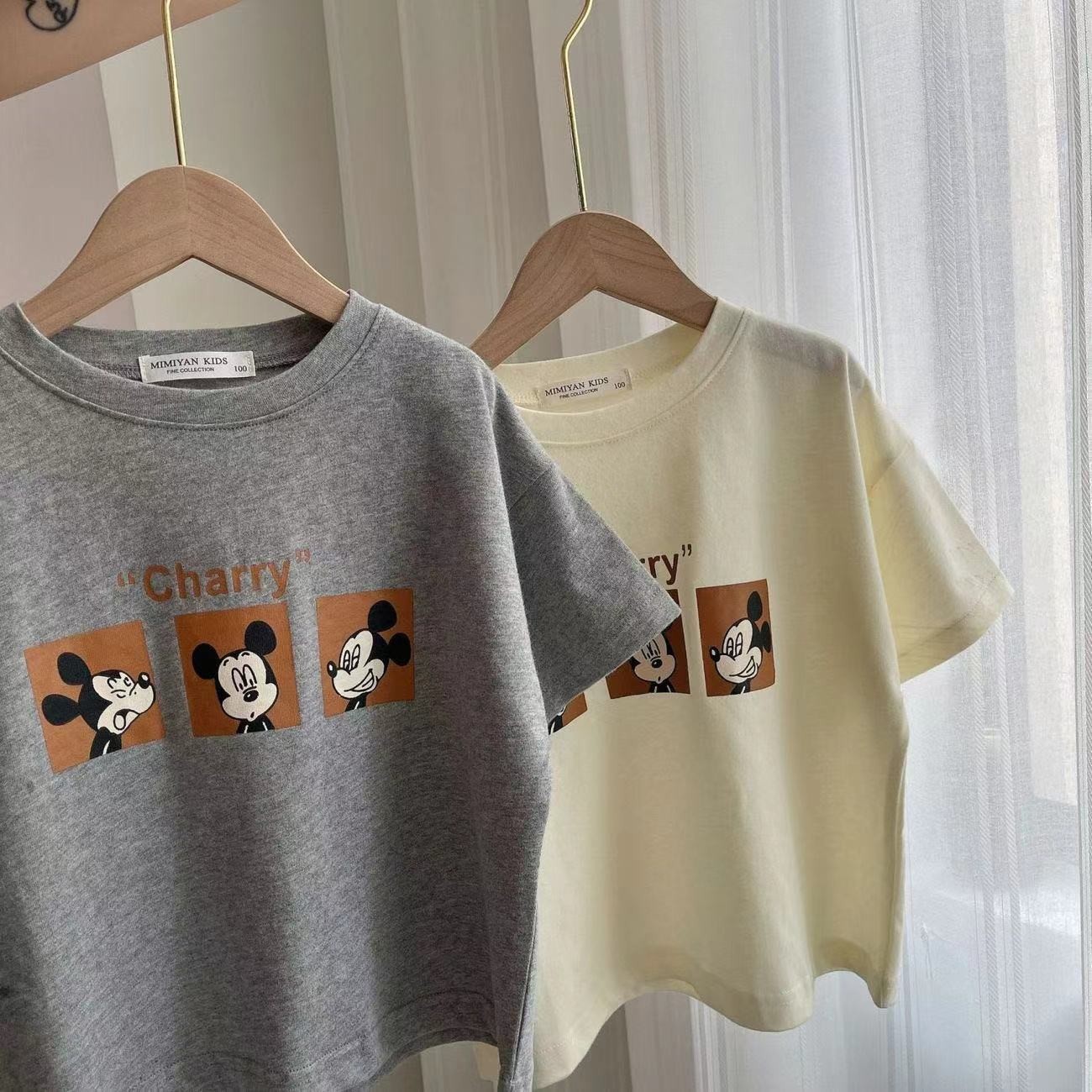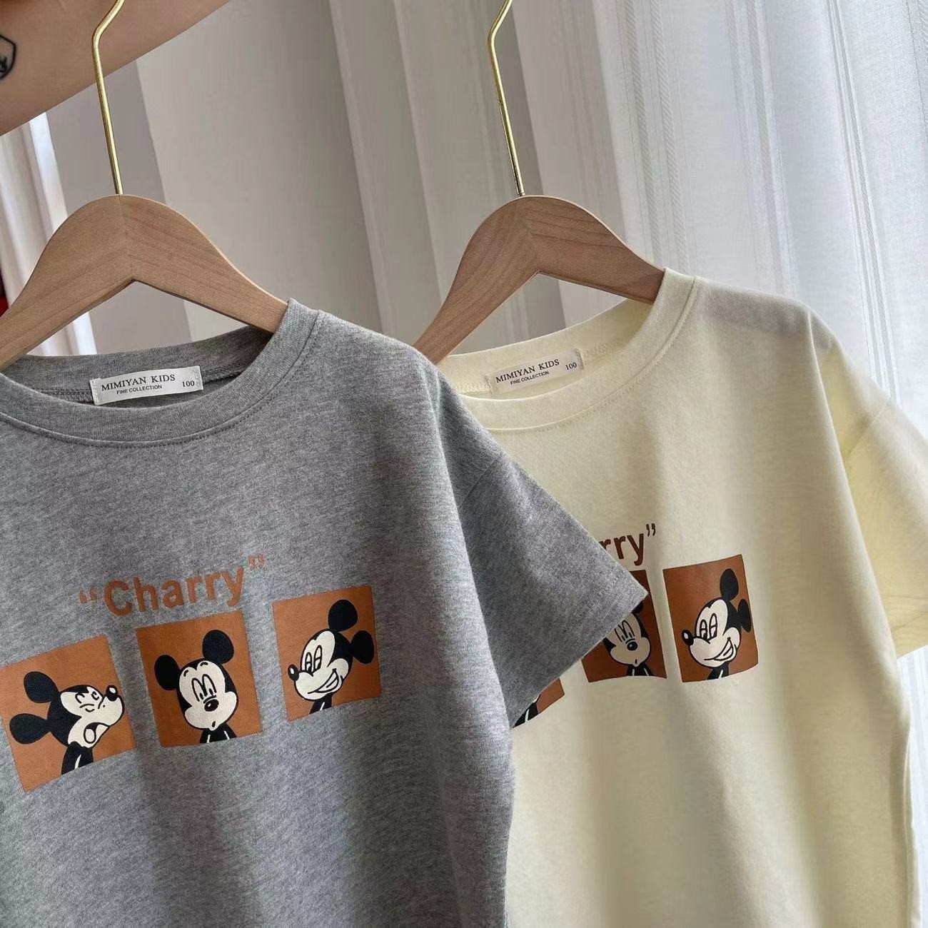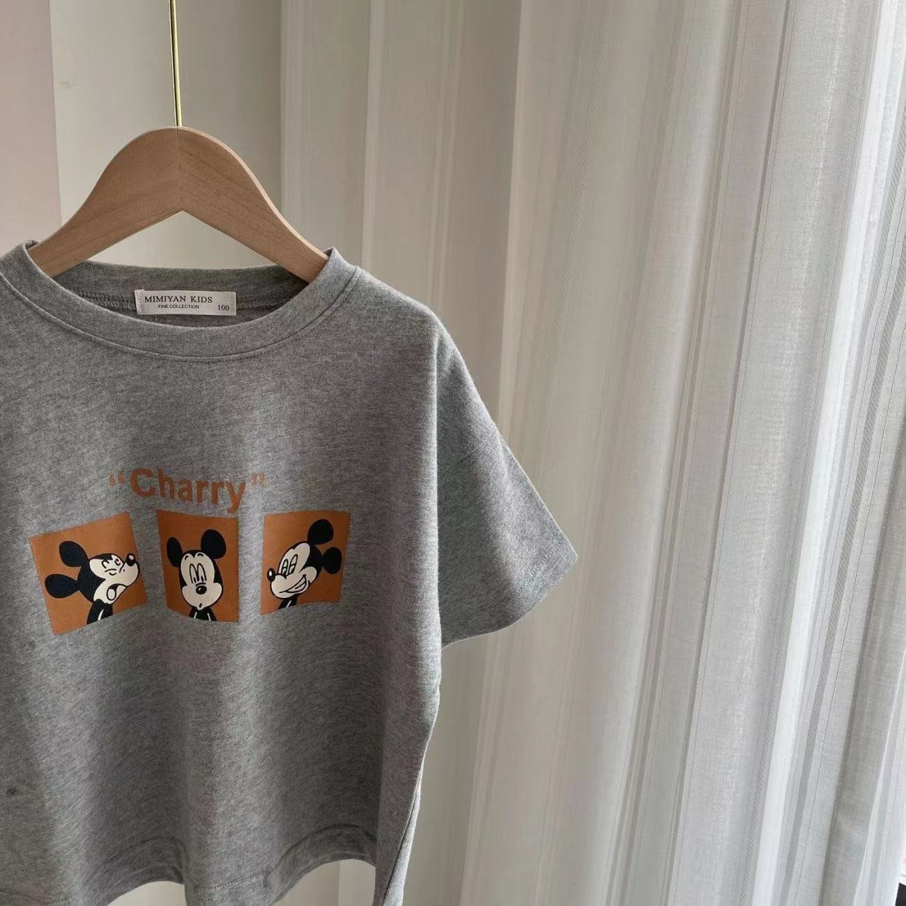 어린이 티셔츠 소년과 소녀를위한 여름 얇은 만화 마우스 인쇄 반팔 티셔츠 아기 라운드 넥 바닥 셔츠 유행스토어 가기