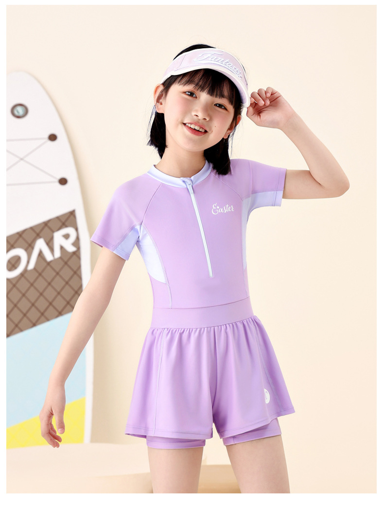 어린이 수영복 여성용 소형 중대형 어린이 Siomatic 수영복 2024 새로운 반팔 태양 방지 더블 레이어 복서 스포츠 수영복스토어 가기