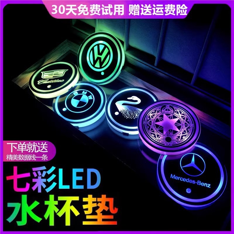 국경 간 폭발 자동차 LED 발광 코스터 다채로운 컵 매트 자동차 분위기 빛 USB 충전 미끄럼 방지 코스터스토어 가기