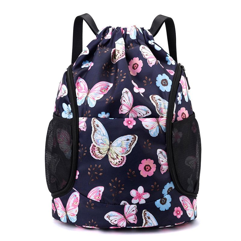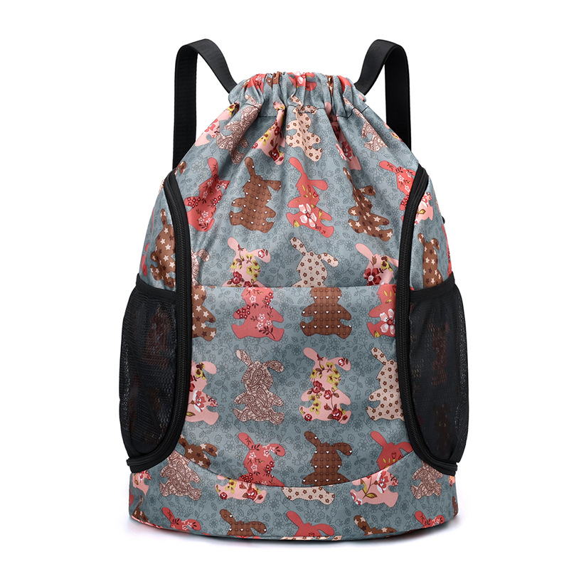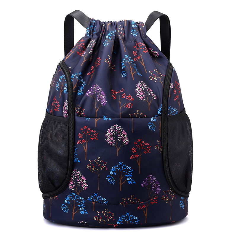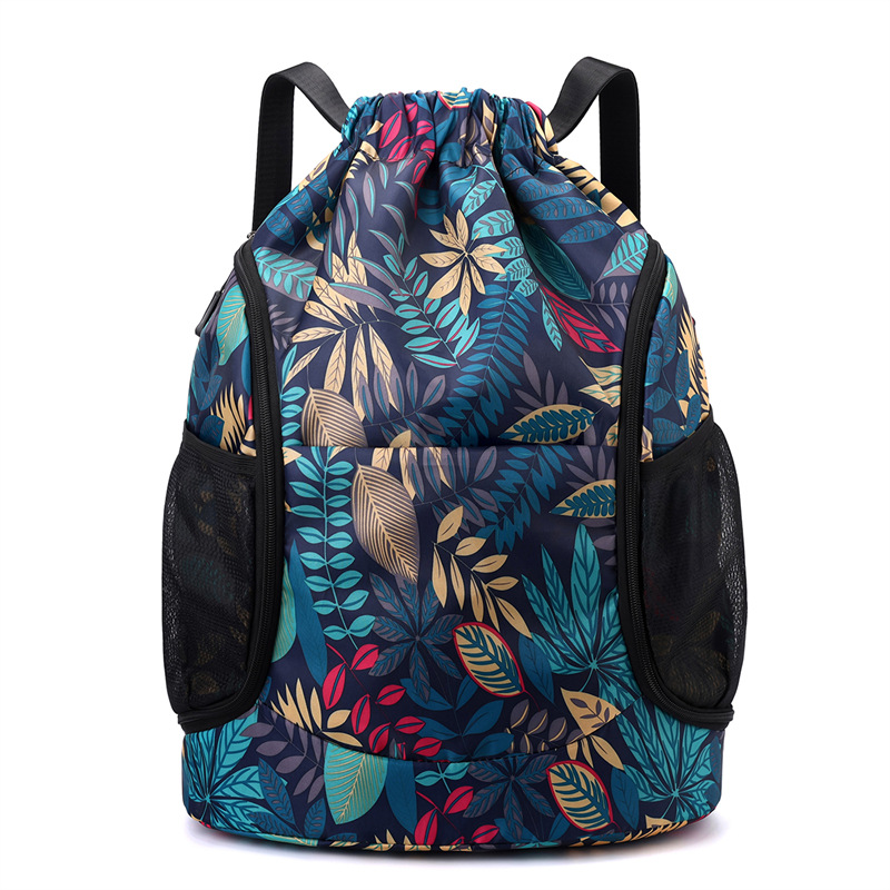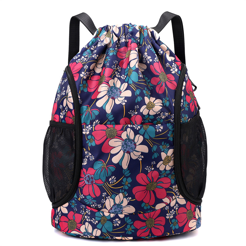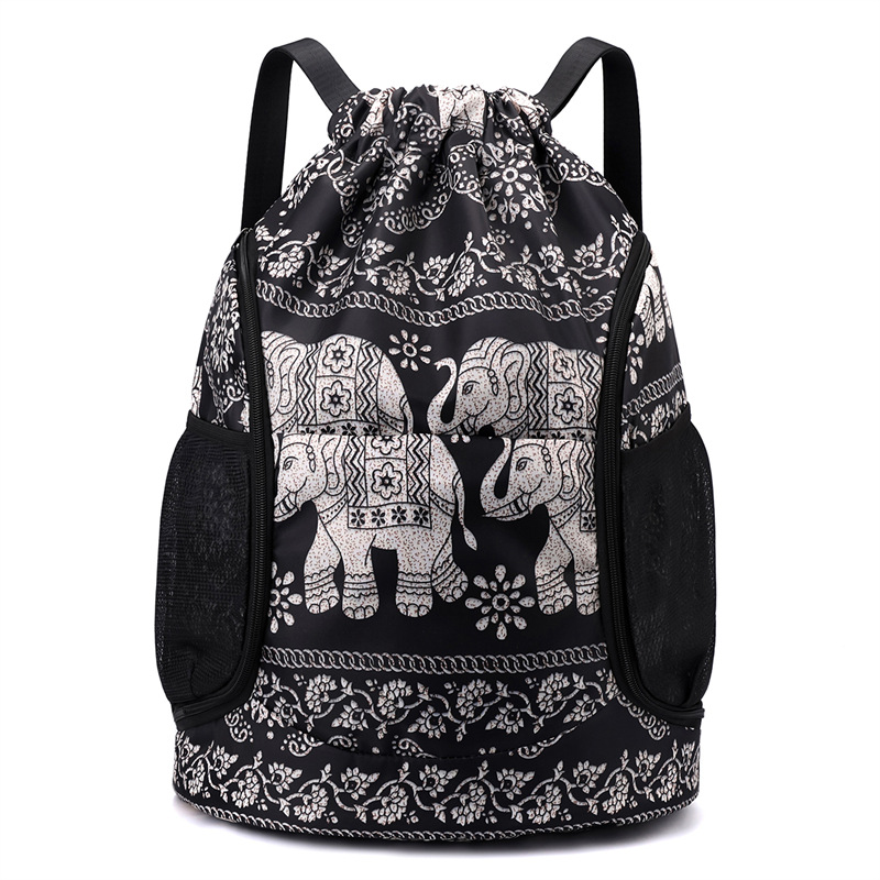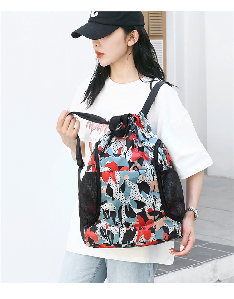 인쇄 된 서랍 간단한 경량 스포츠 배낭 여성 번들 포켓 러닝 피트니스 가방 야외 여행 비치 백