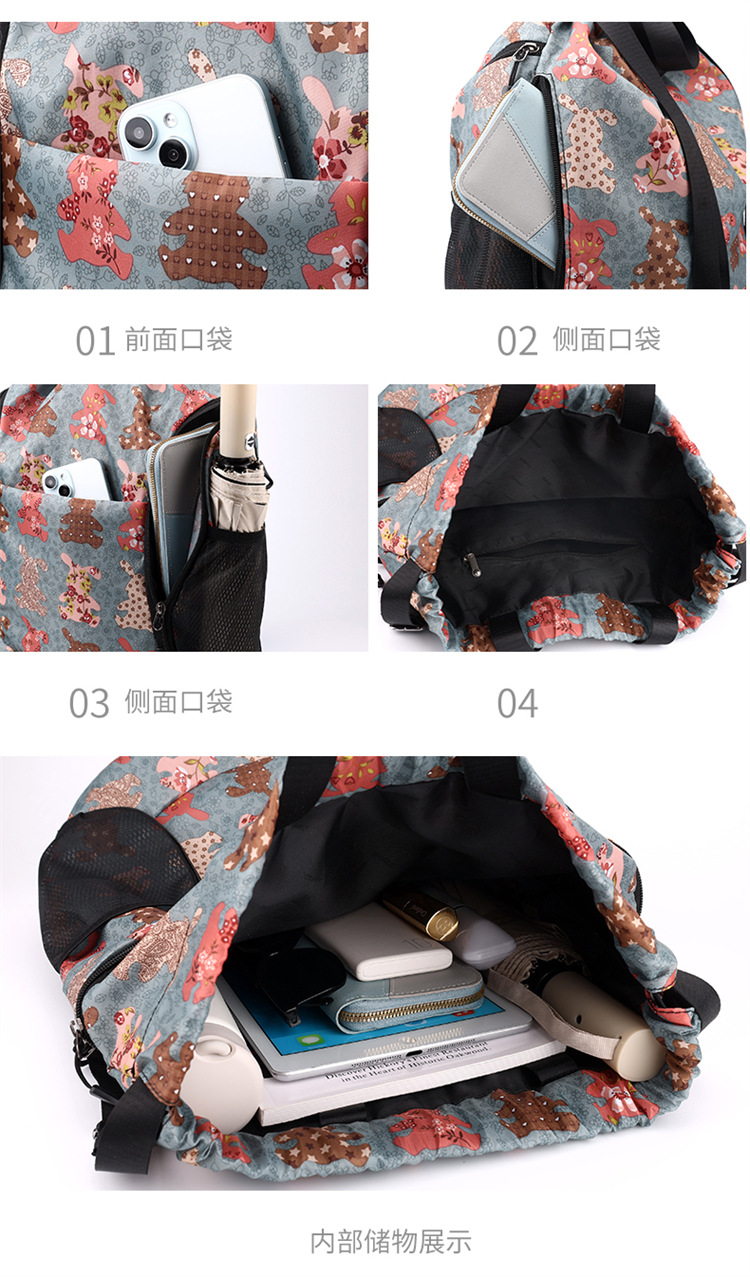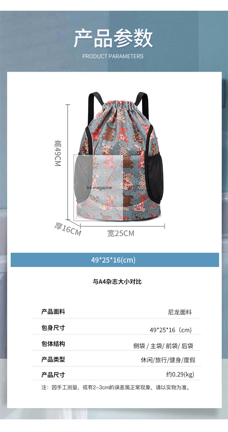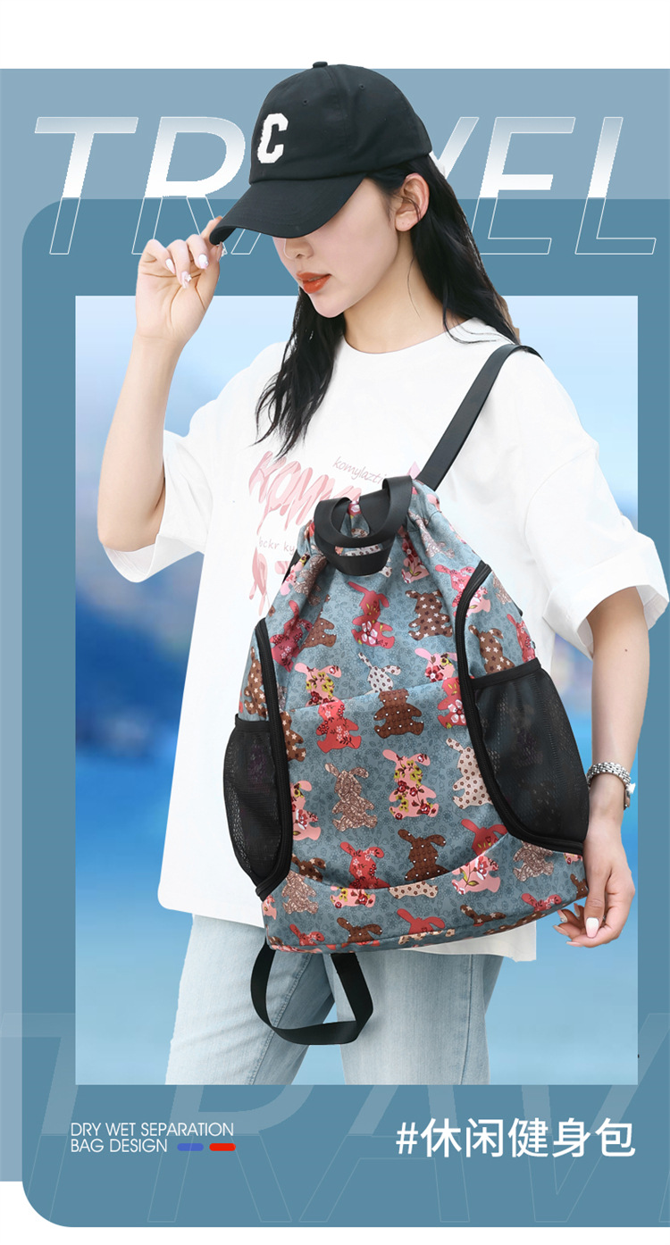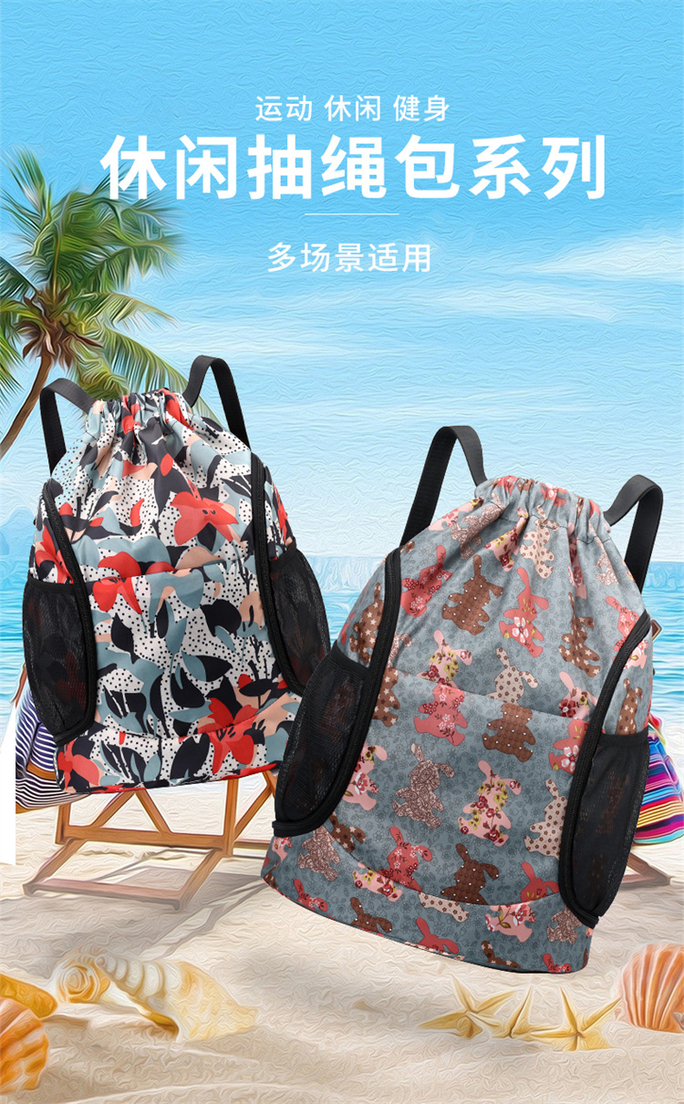 인쇄 된 서랍 간단한 경량 스포츠 배낭 여성 번들 포켓 러닝 피트니스 가방 야외 여행 비치 백
