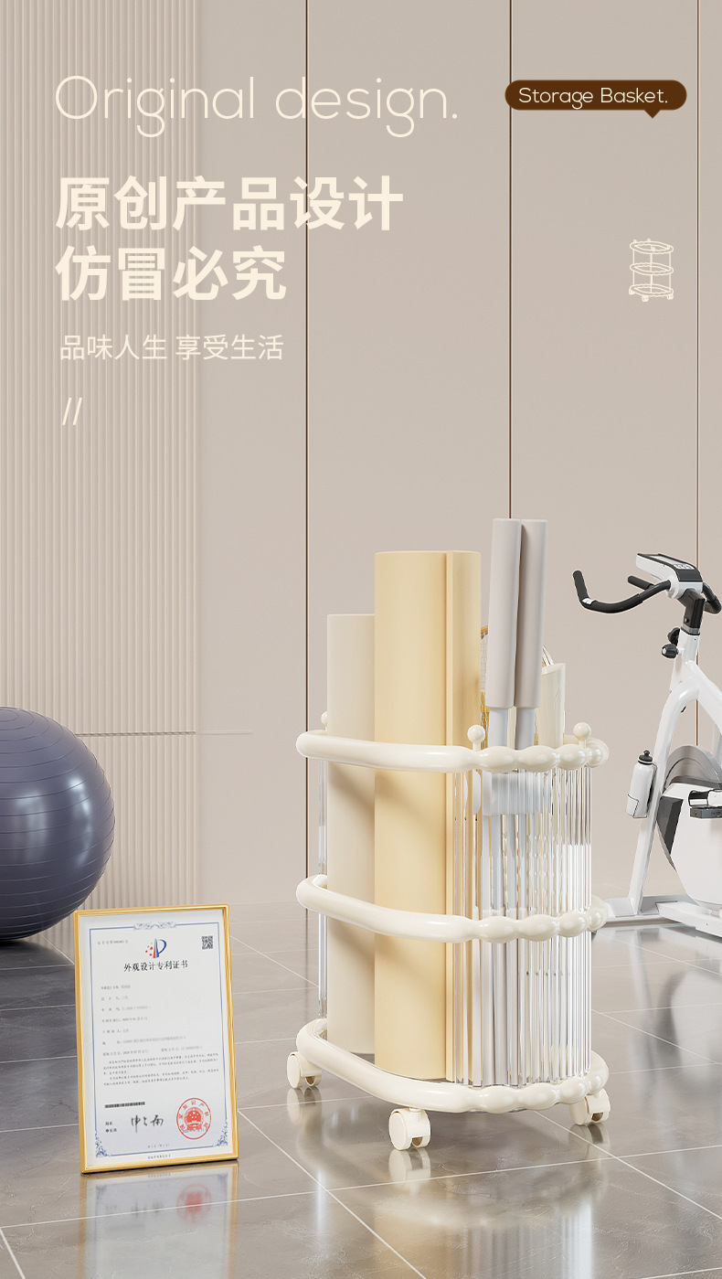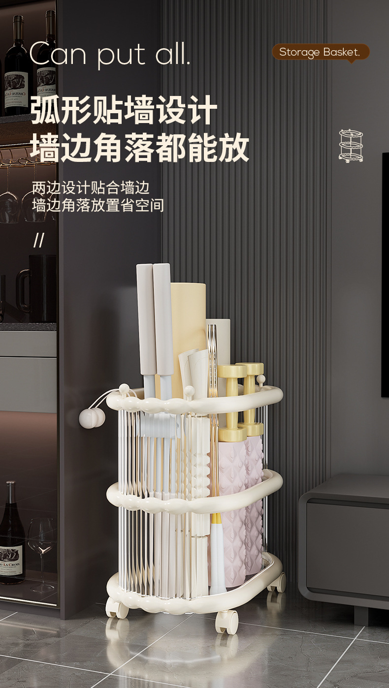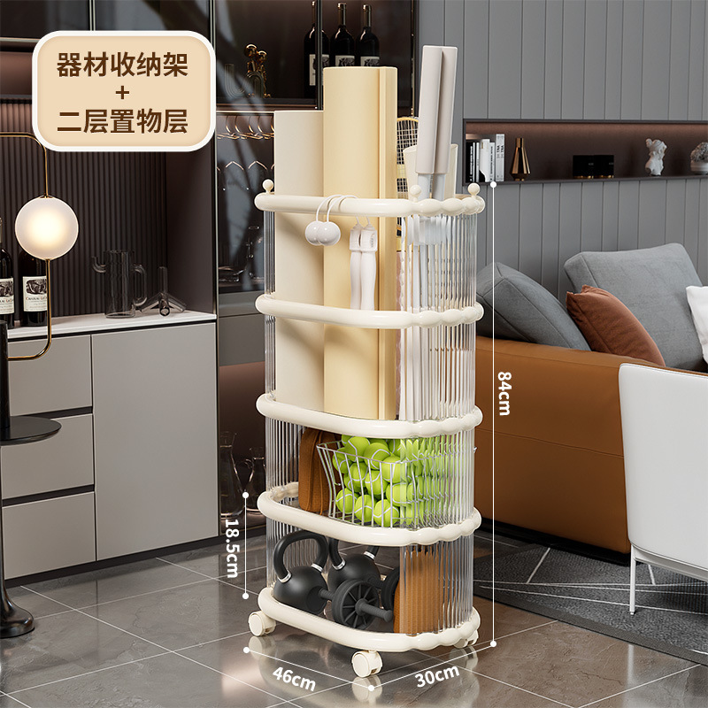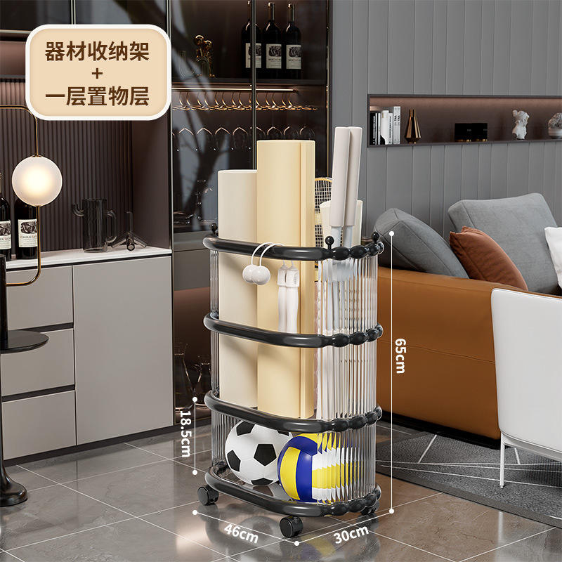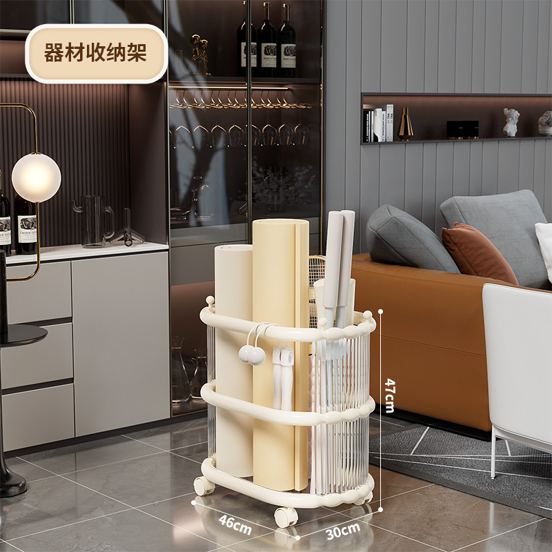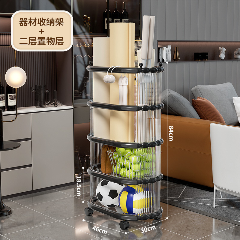 바퀴가 달린 요가 매트 보관 바구니 가정용 스포츠 도구 폼 롤러 마감 보관 상자 피트니스 장비 보관 랙