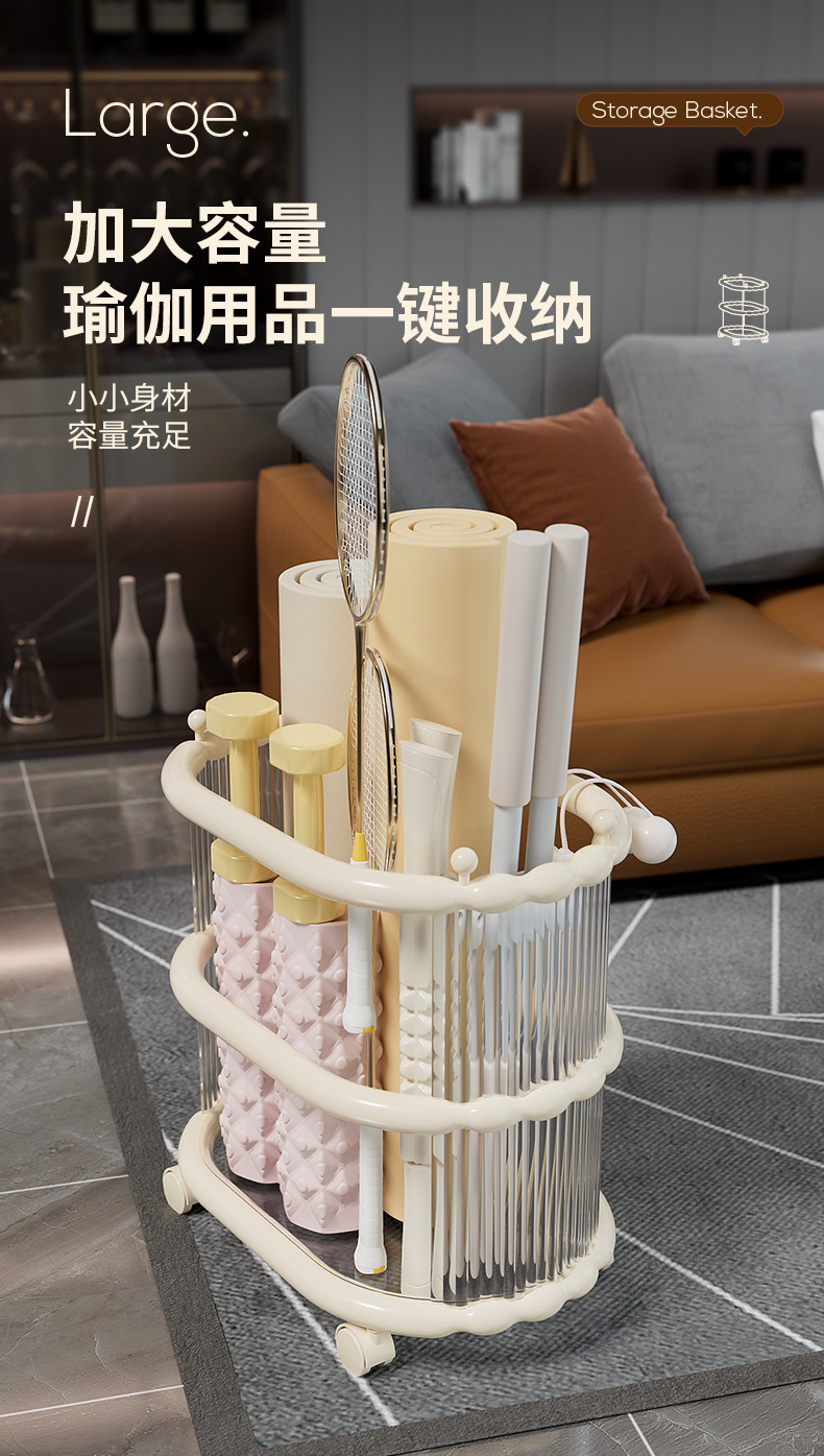바퀴가 달린 요가 매트 보관 바구니 가정용 스포츠 도구 폼 롤러 마감 보관 상자 피트니스 장비 보관 랙스토어 가기