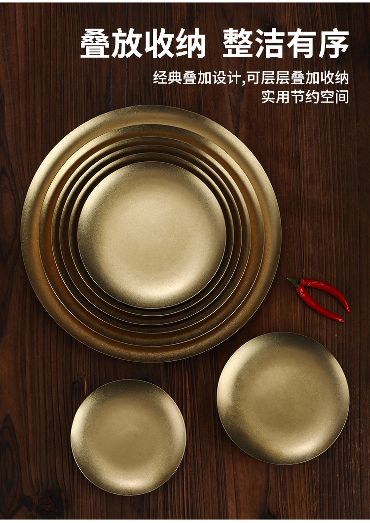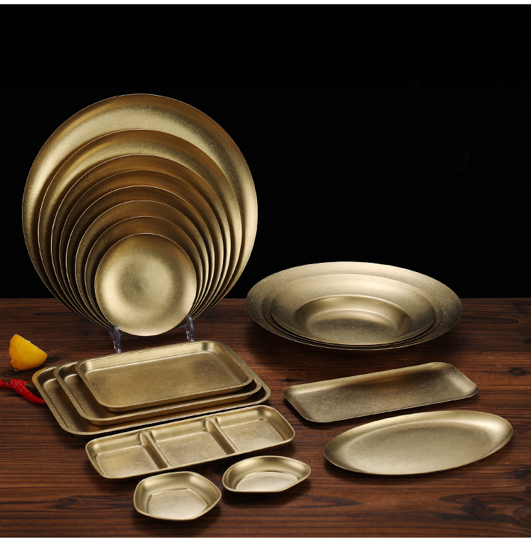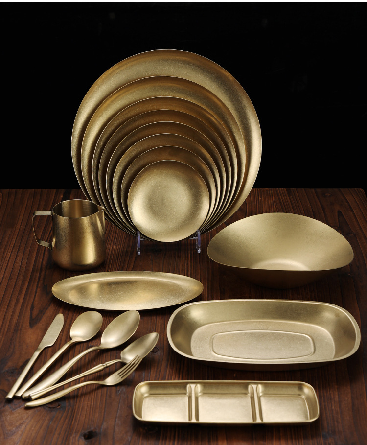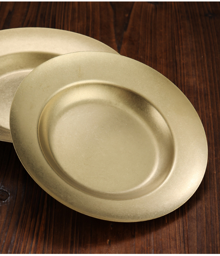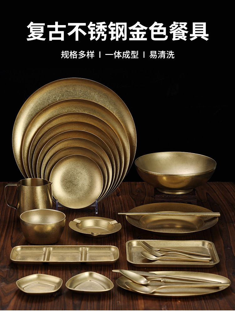 라이트 럭셔리 레트로 스노우 골드 플레이트 304 스테인레스 스틸 플레이트 골드 라운드 플레이트 얕은 플레이트 산업 스타일 트레이 고가 디너 플레이트스토어 가기