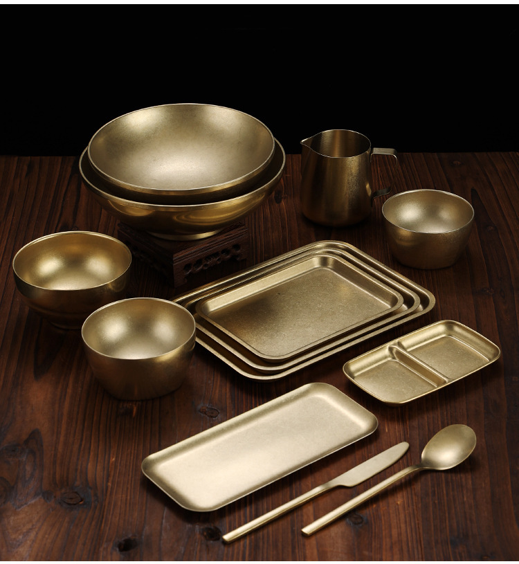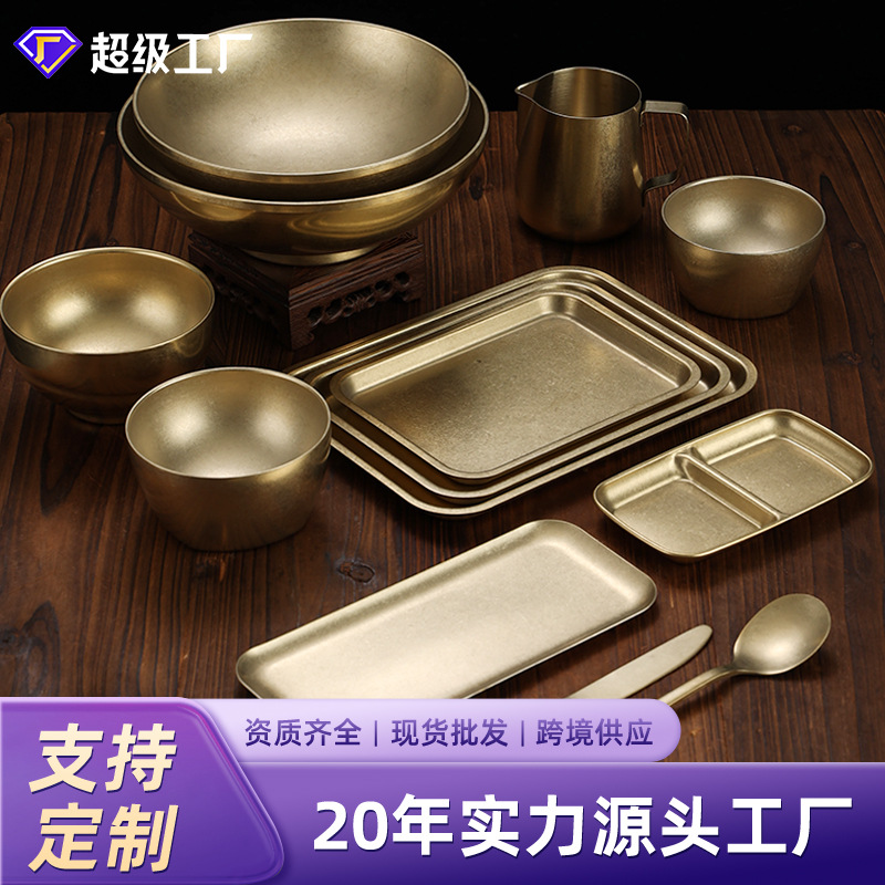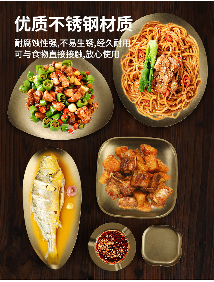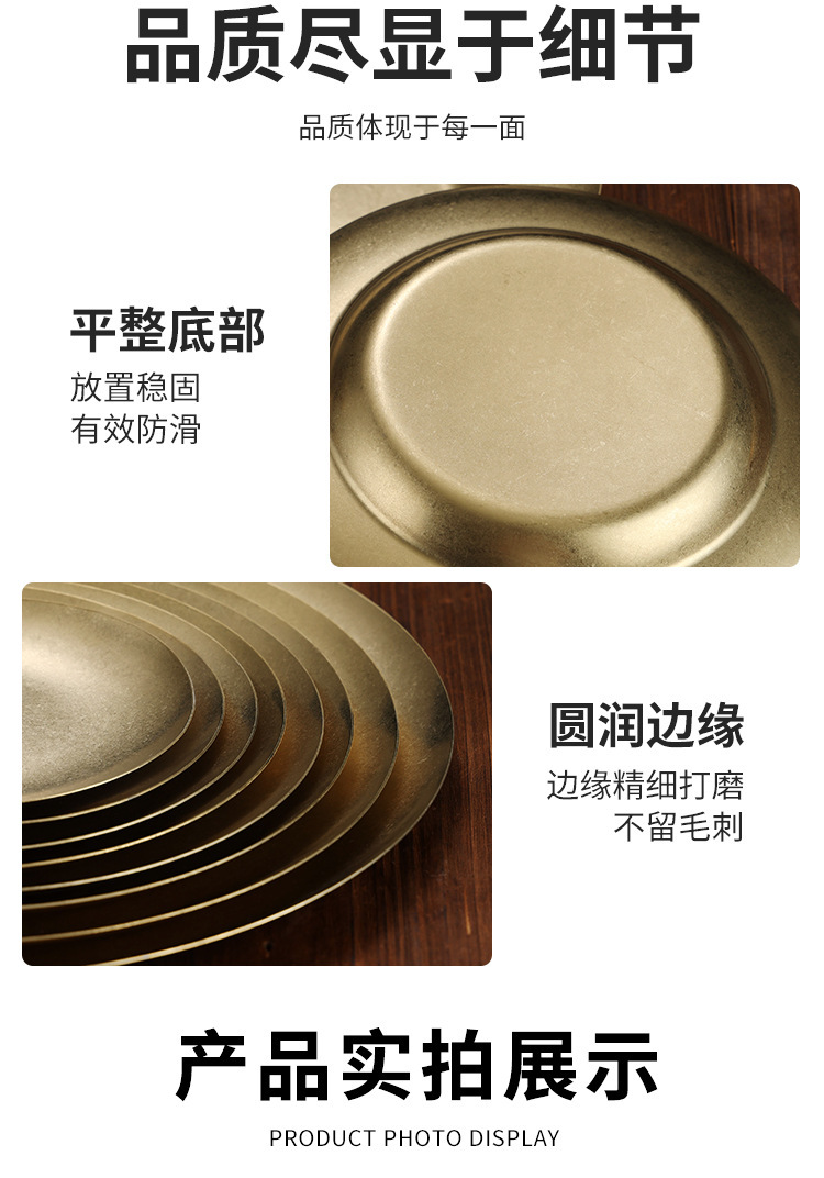 라이트 럭셔리 레트로 스노우 골드 플레이트 304 스테인레스 스틸 플레이트 골드 라운드 플레이트 얕은 플레이트 산업 스타일 트레이 고가 디너 플레이트스토어 가기