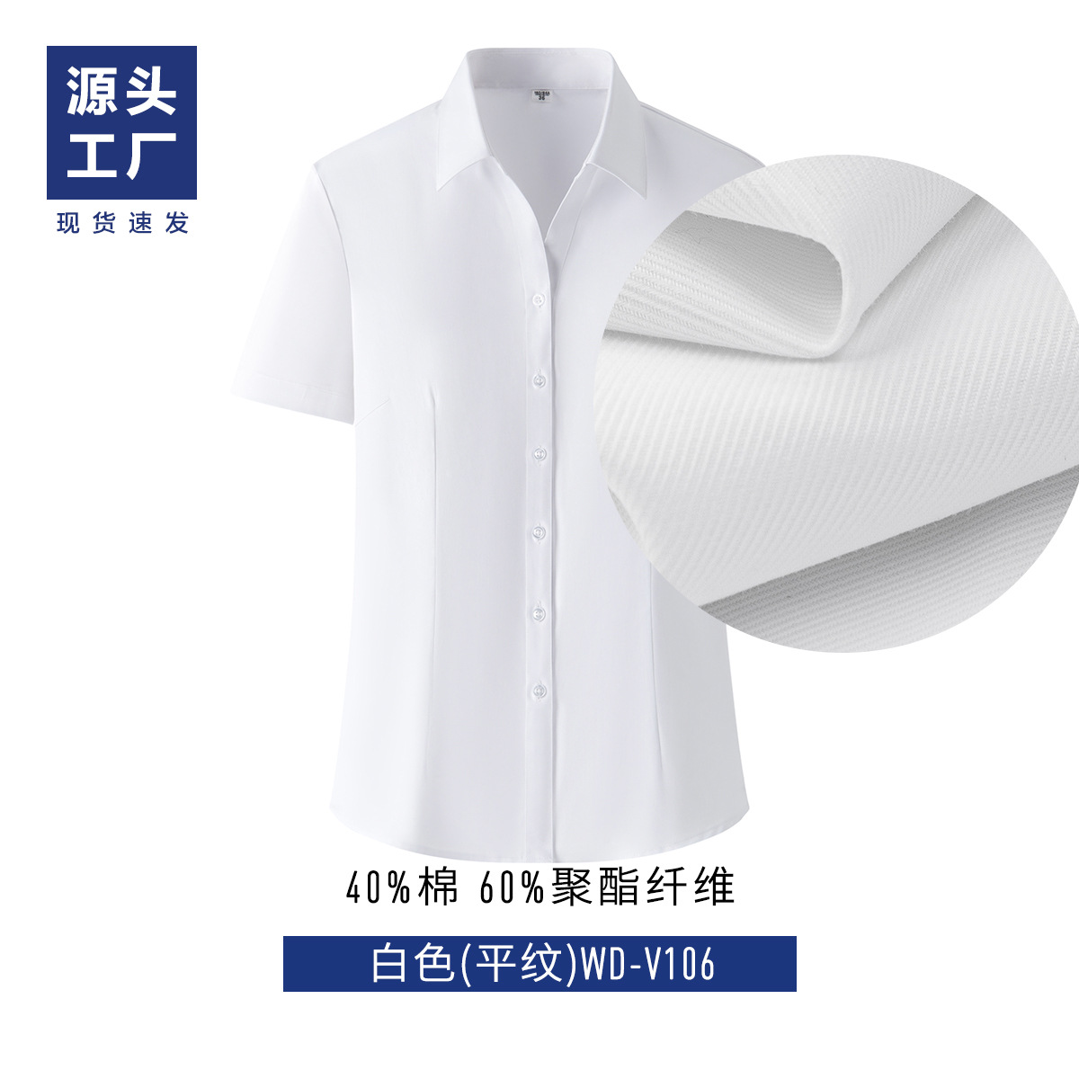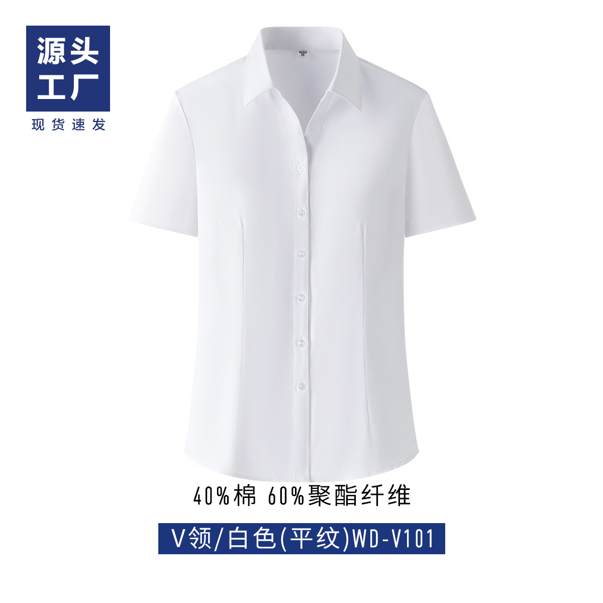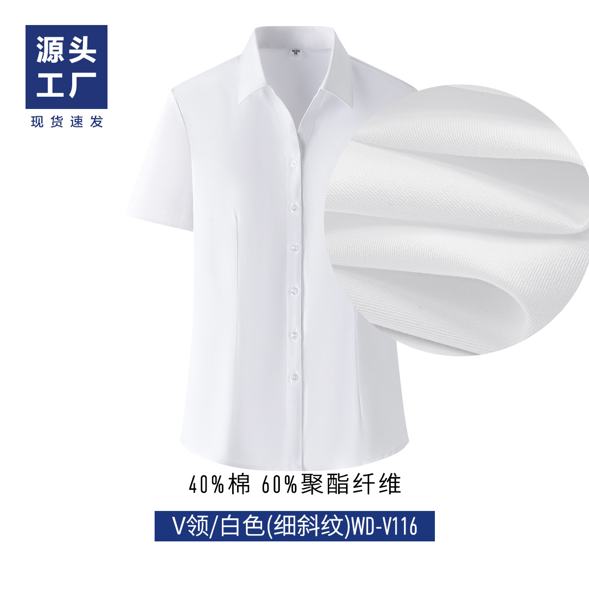 • 여성/반팔-화이트 브이넥(굵은 트윌)