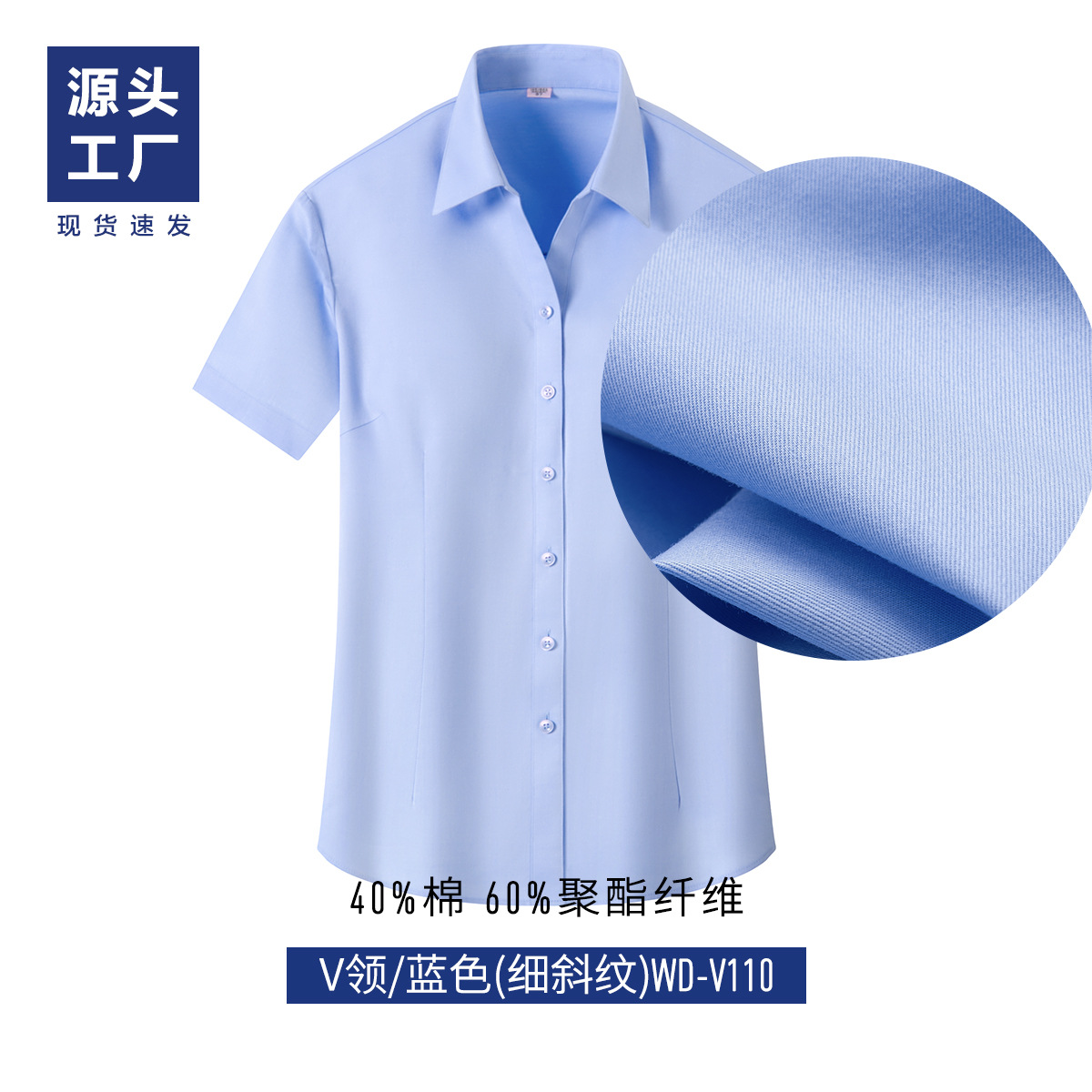 • 여성/반팔-블루 브이넥(고운 트윌)