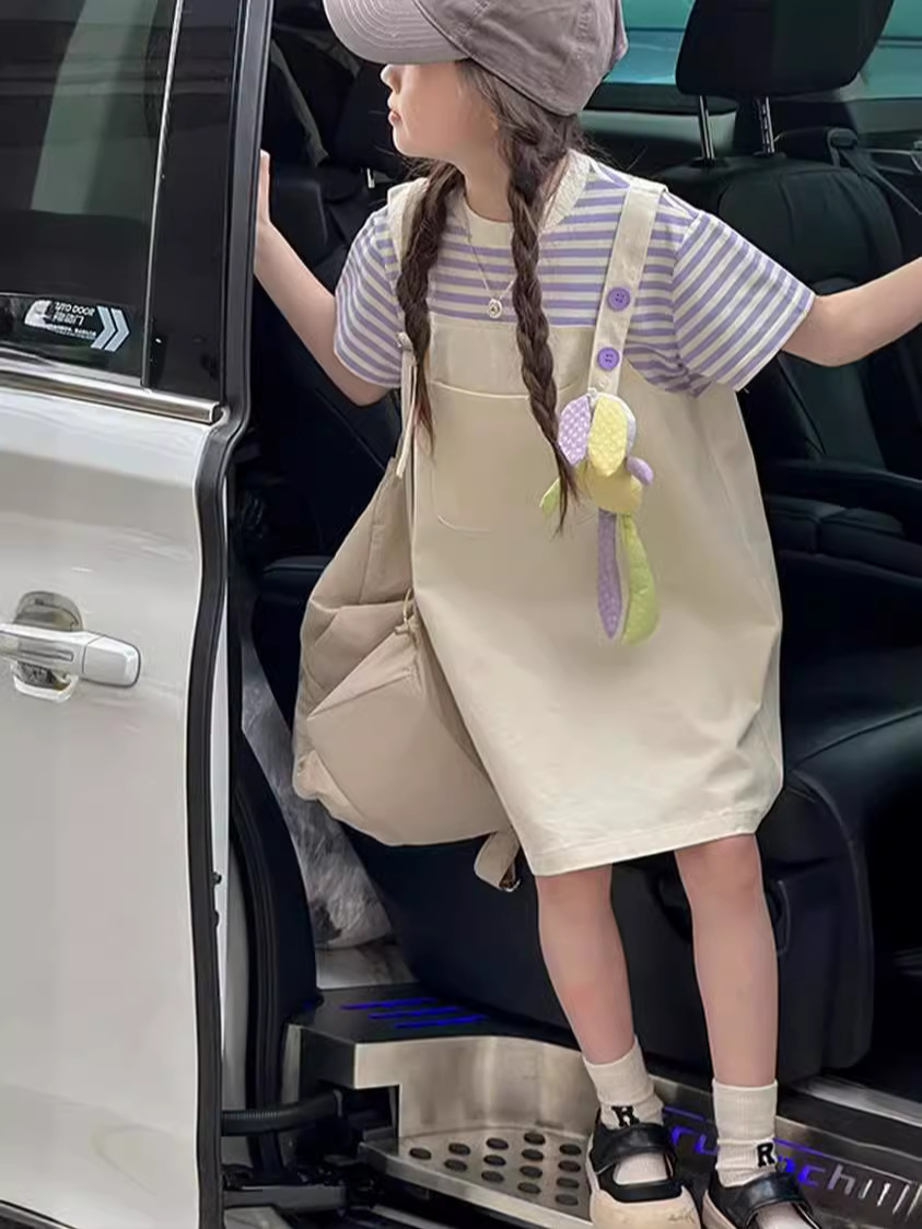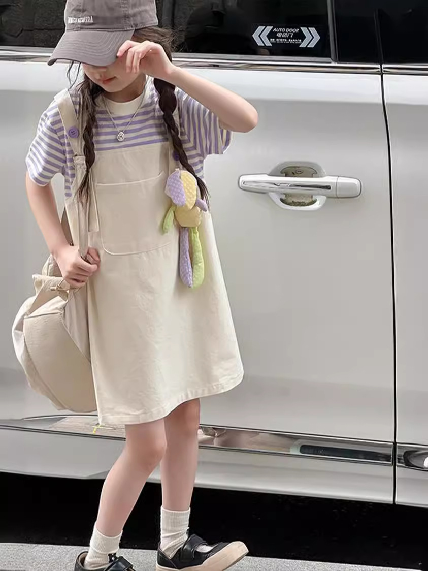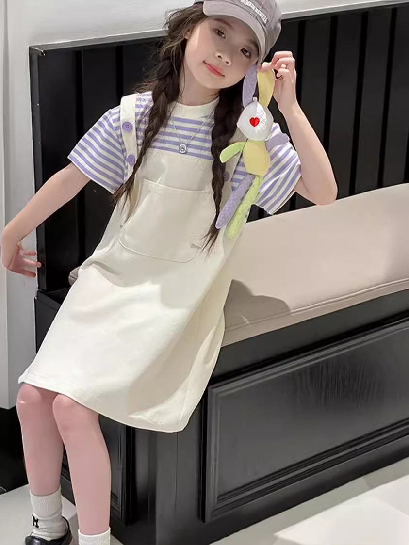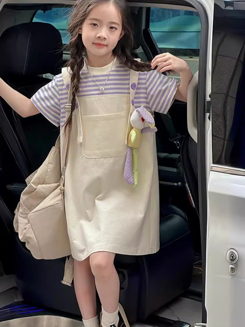 소녀 가짜 투피스 스트랜드 스커트 여름 2024 새로운 어린이 서양식 여름 스커트 큰 어린이와 소녀 원피스스토어 가기