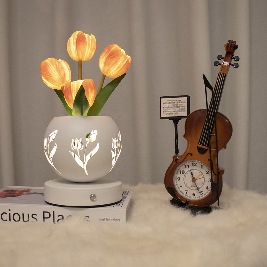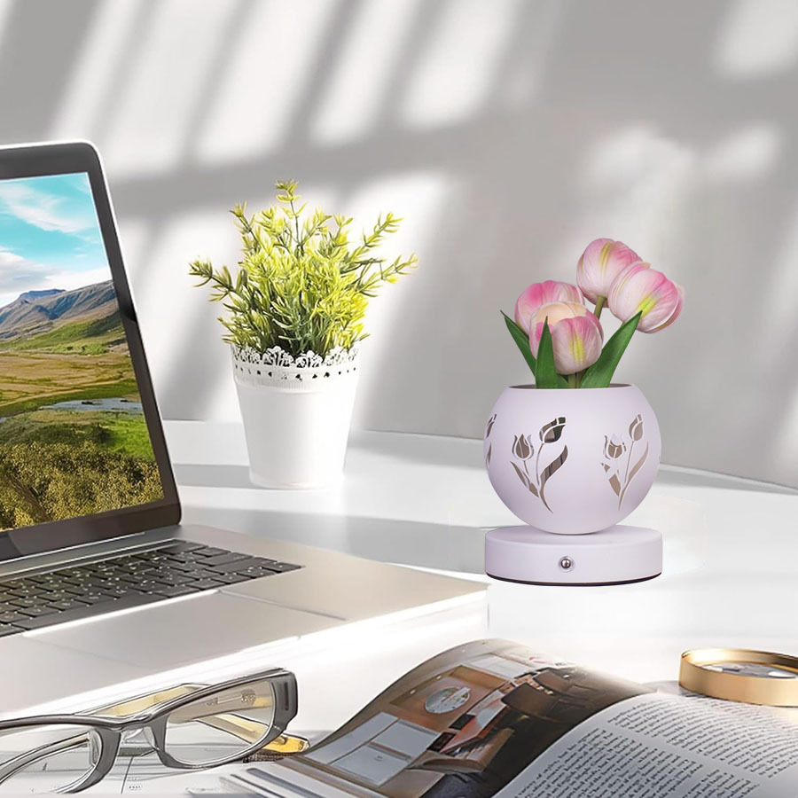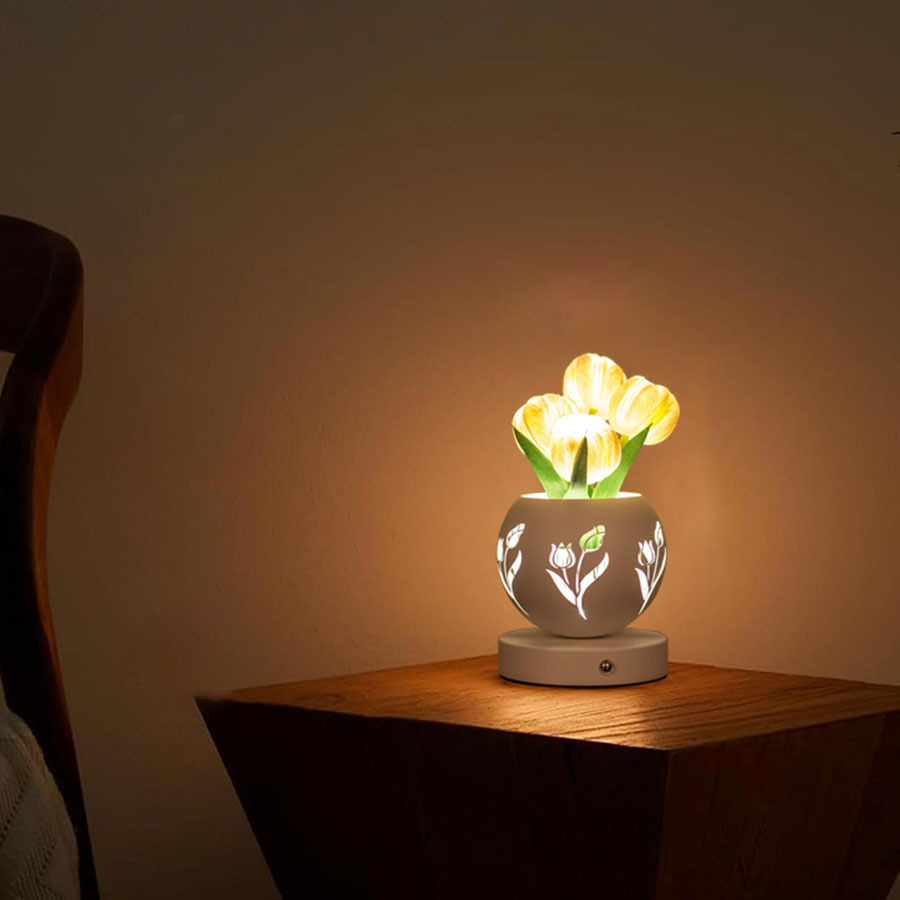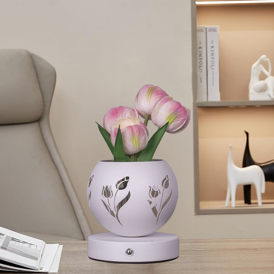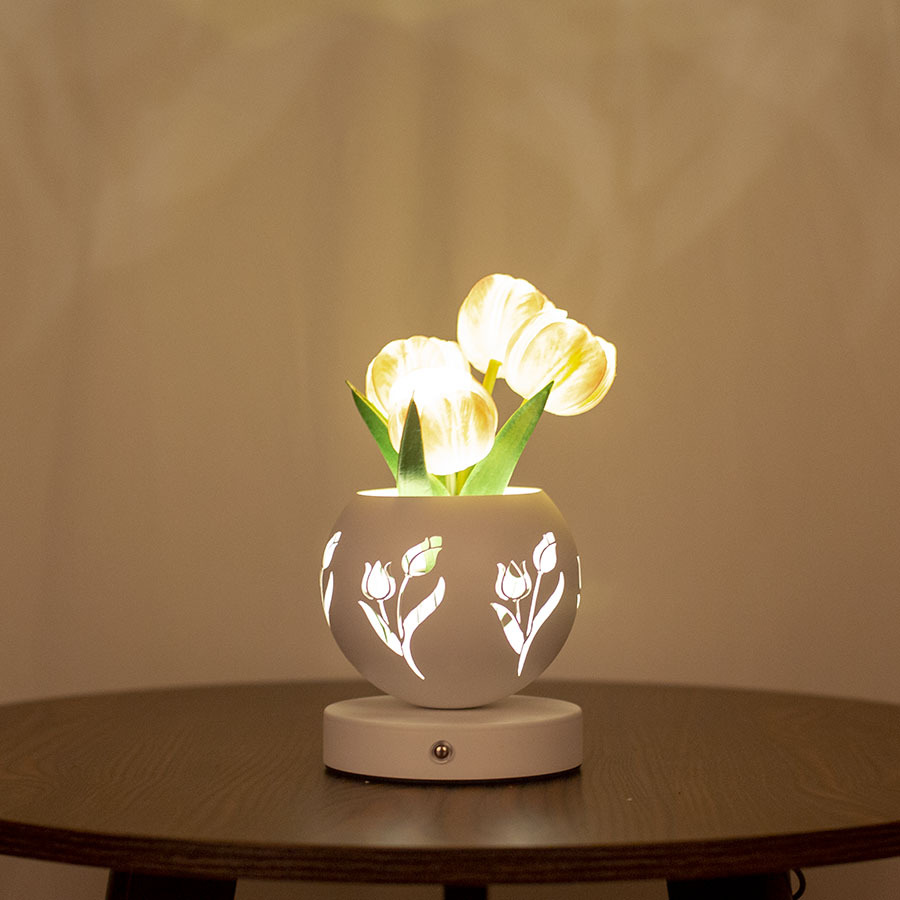 • 흰색 튤립 (3 색 디밍 USB 충전 중공 프로젝션 화분)