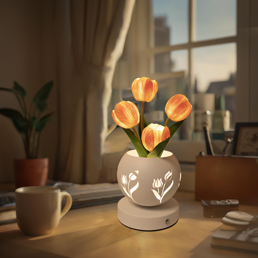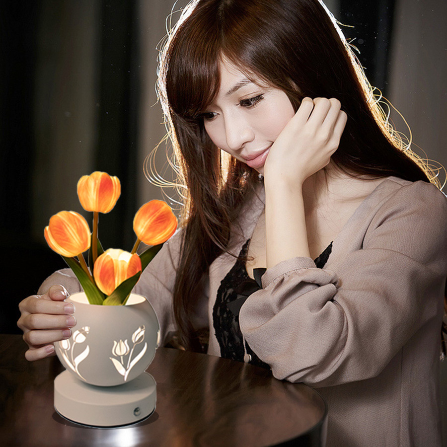 • 오렌지 튤립 (3 색 디밍 USB 충전 중공 프로젝션 꽃 냄비)
