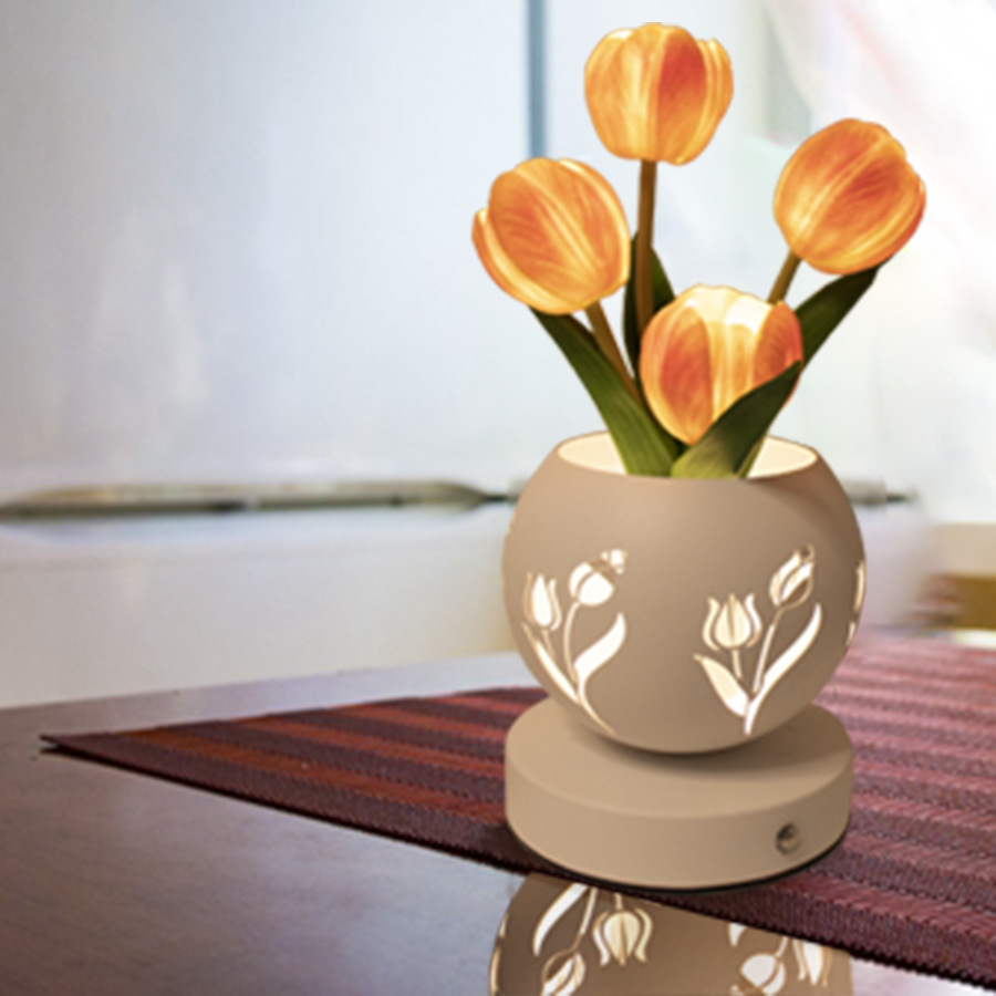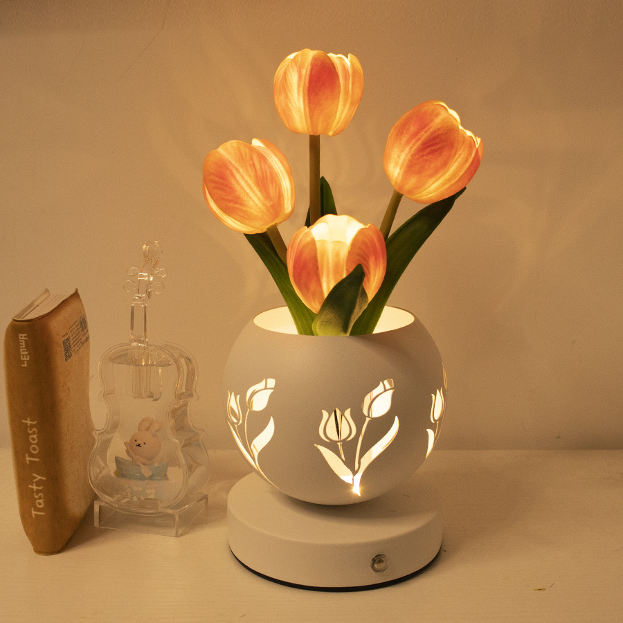 튤립 나이트 라이트 새로운 스타일 인스 타 그램 스타일 테이블 램프 라이트 럭셔리 침대 사이드 고급 센스 중공 프로젝션 램프 분위기 램프 선물