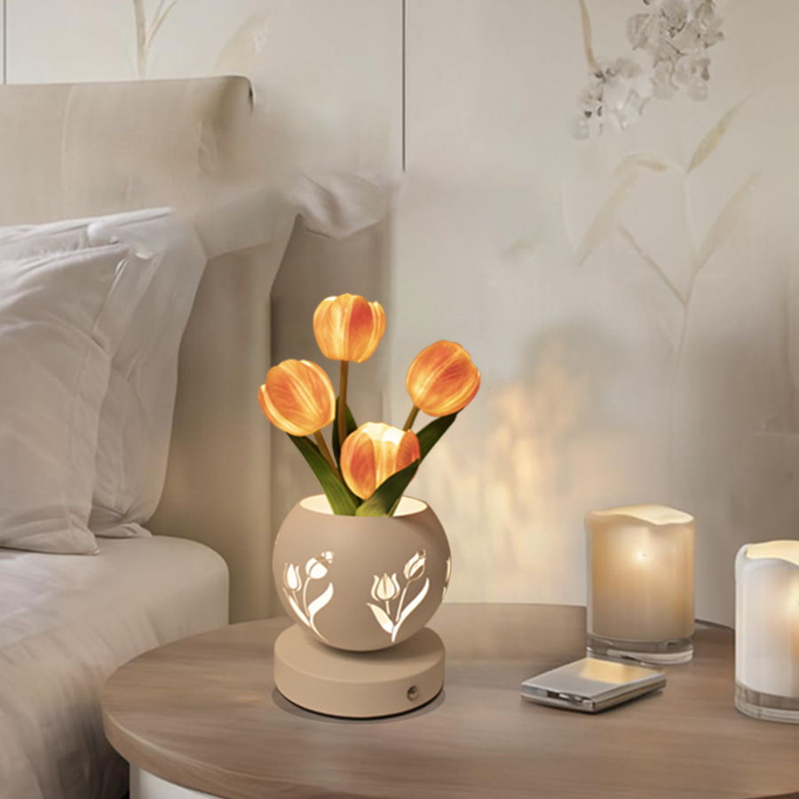 튤립 나이트 라이트 새로운 스타일 인스 타 그램 스타일 테이블 램프 라이트 럭셔리 침대 사이드 고급 센스 중공 프로젝션 램프 분위기 램프 선물스토어 가기