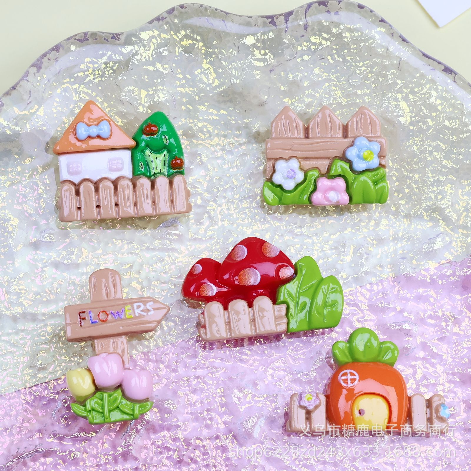 꽃 울타리 집 장면 글로우 페이스 수지 액세서리 크림 접착제 DIY 전화 케이스 냉장고 스티커 키 체인 헤어핀스토어 가기