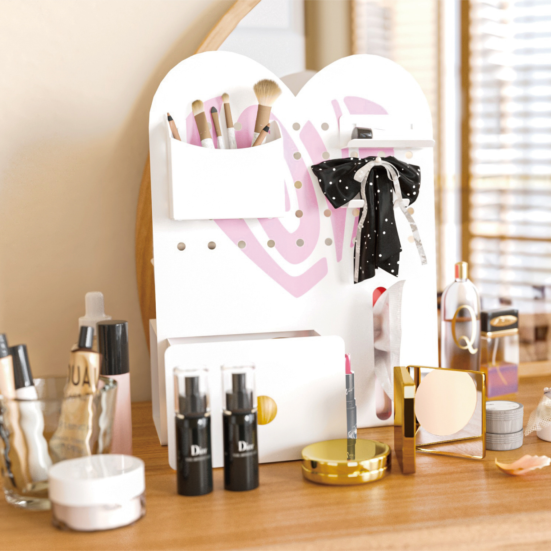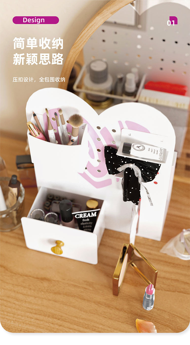 화장품 수납 선반, 심플하고 세련된 데스크탑 홀보드 수납 선반, 사무실 책상 티슈 박스 수납 선반