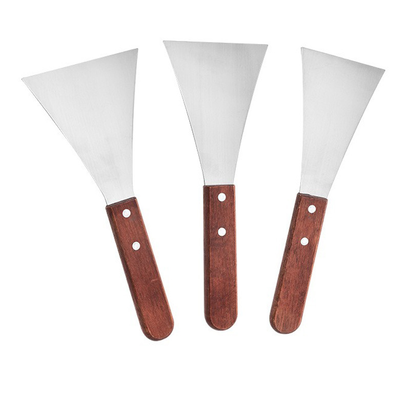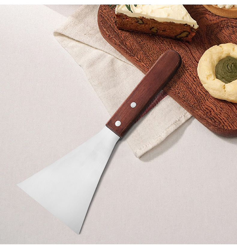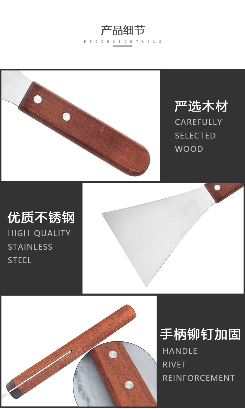 나무 손잡이 스테인리스 평평한 입 8 자형 요리 삽 다기능 바베큐 팬케이크 튀김 스테이크 스트레이트 핸들 삼각형 스테이크 삽