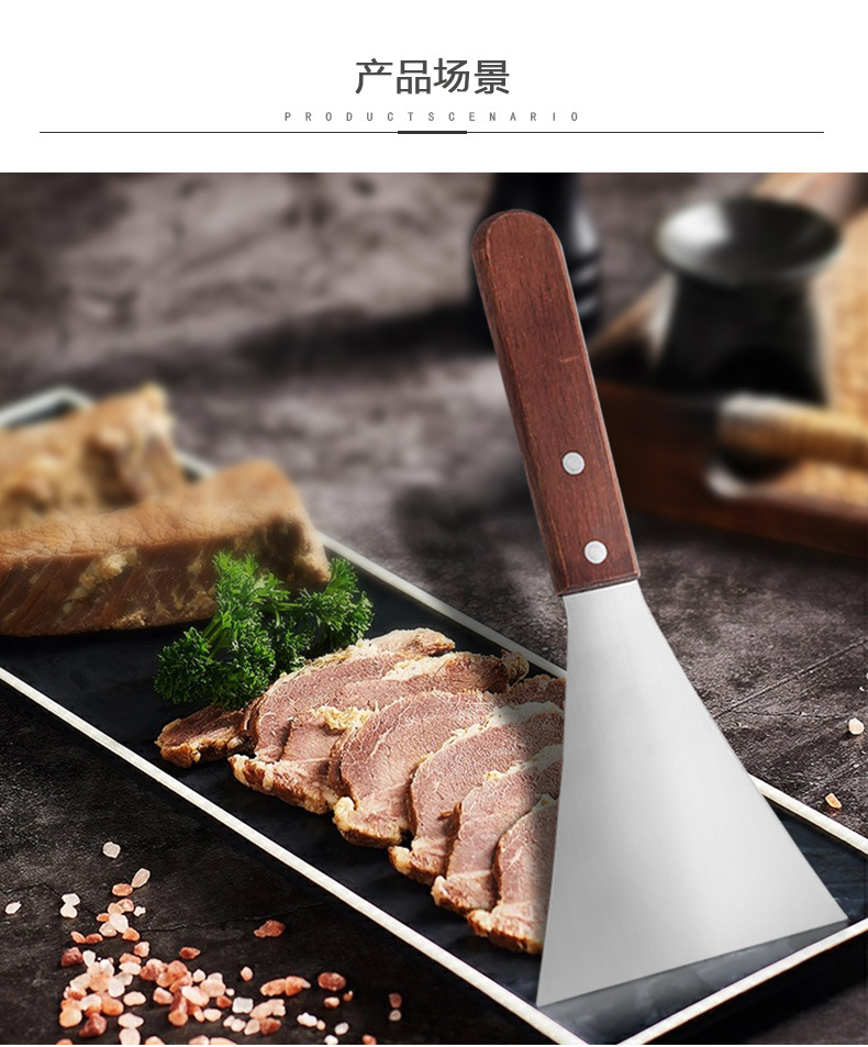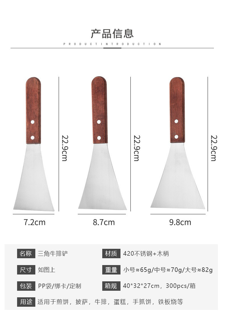 木柄不锈钢平口八字料理铲 多功能烧烤煎饼煎牛排直柄三角牛排铲