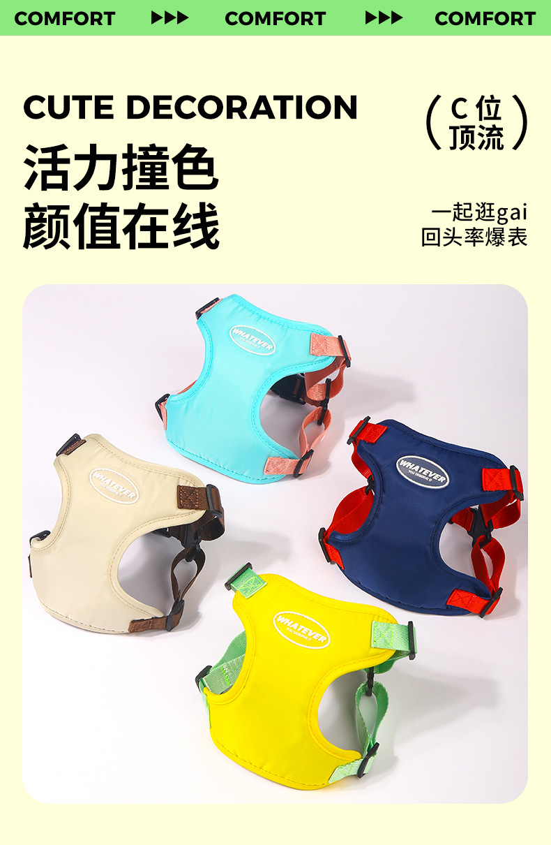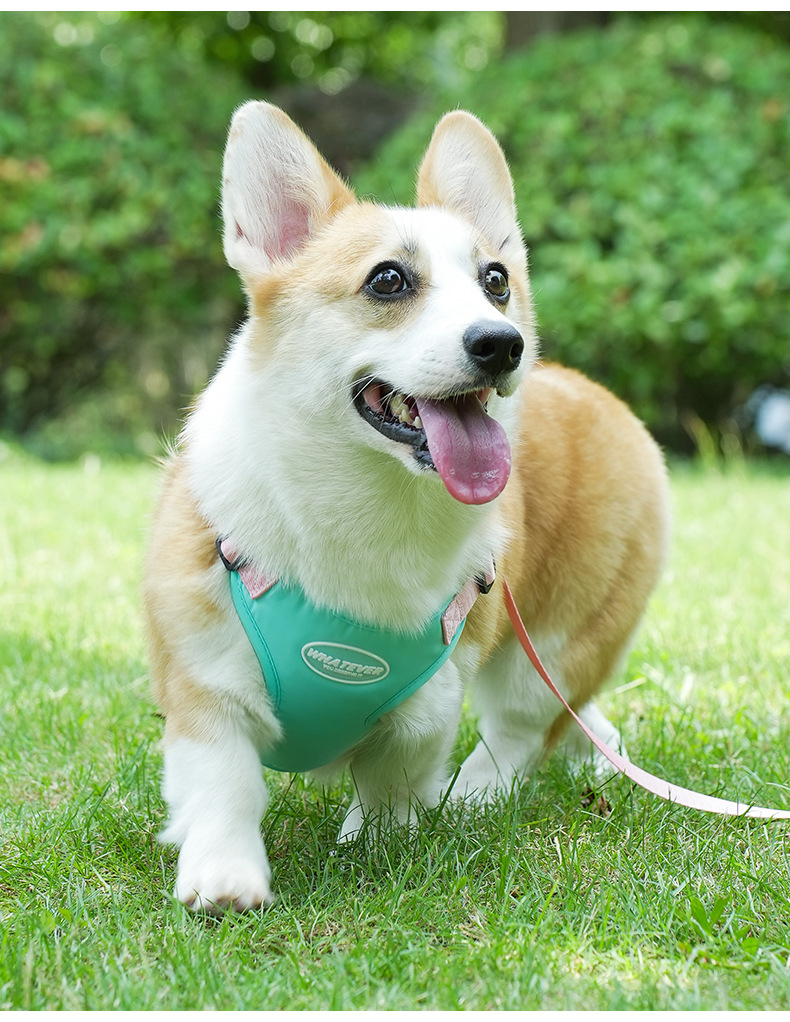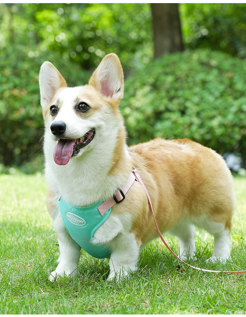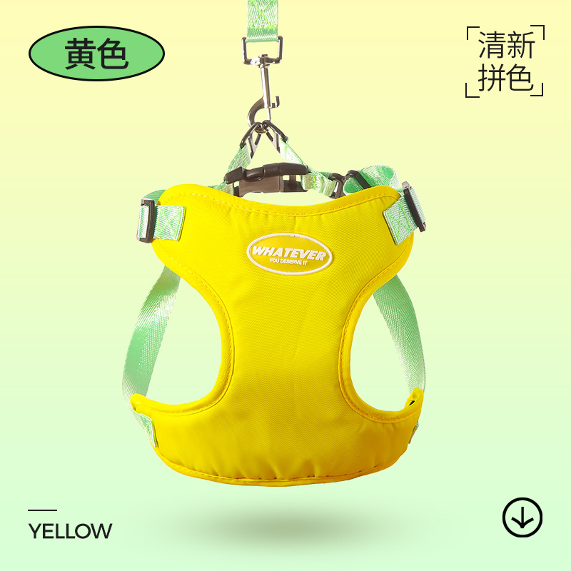 여름 새 개 견인 밧줄 마카롱 더블 콘트라스트 컬러 애완 동물 가슴 스트랩 조정 가능한 조끼 개 워킹 로프스토어 가기