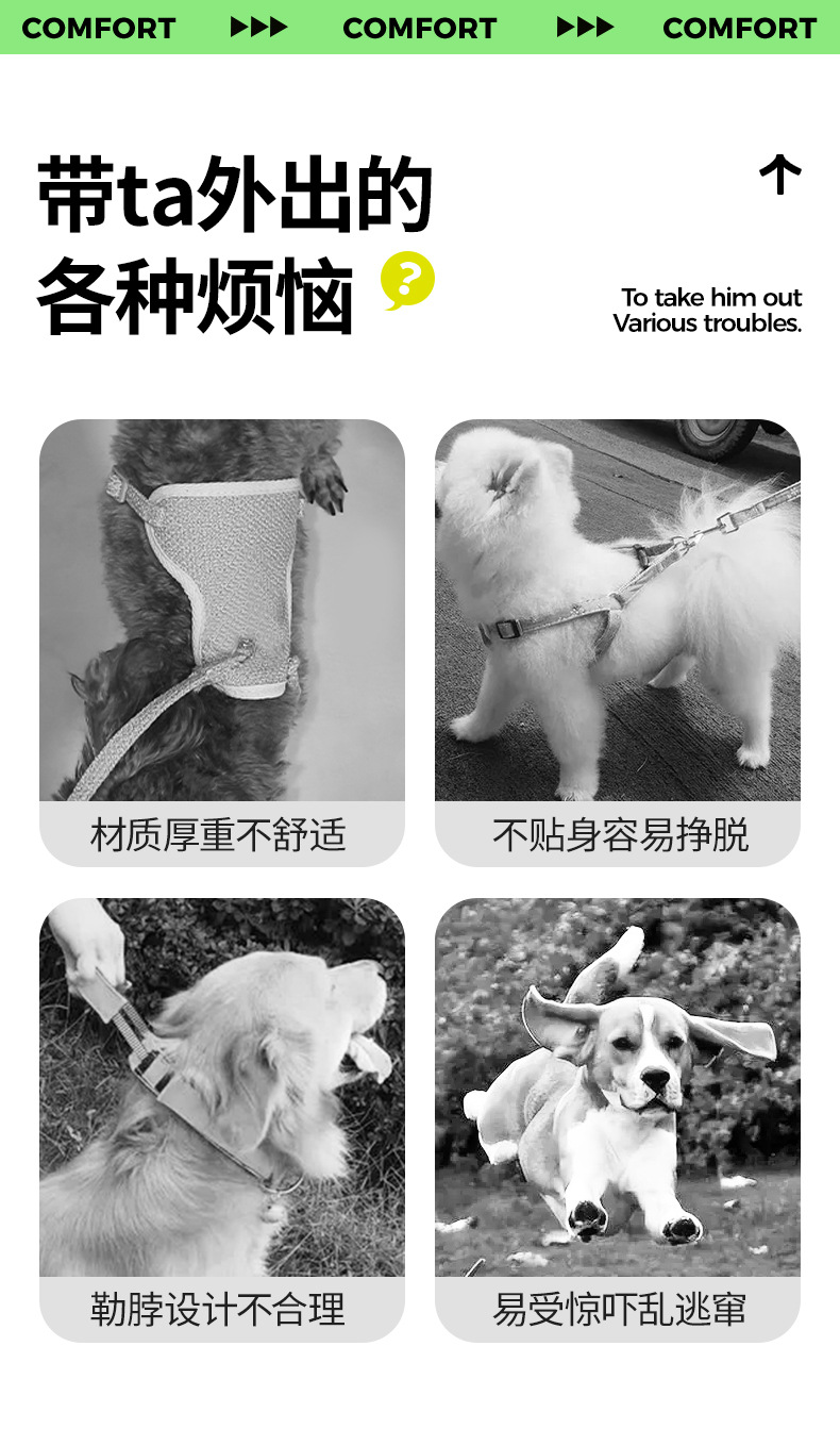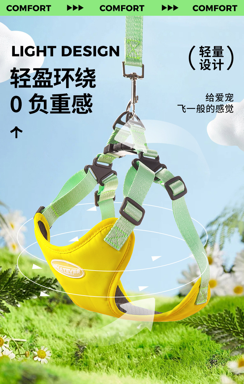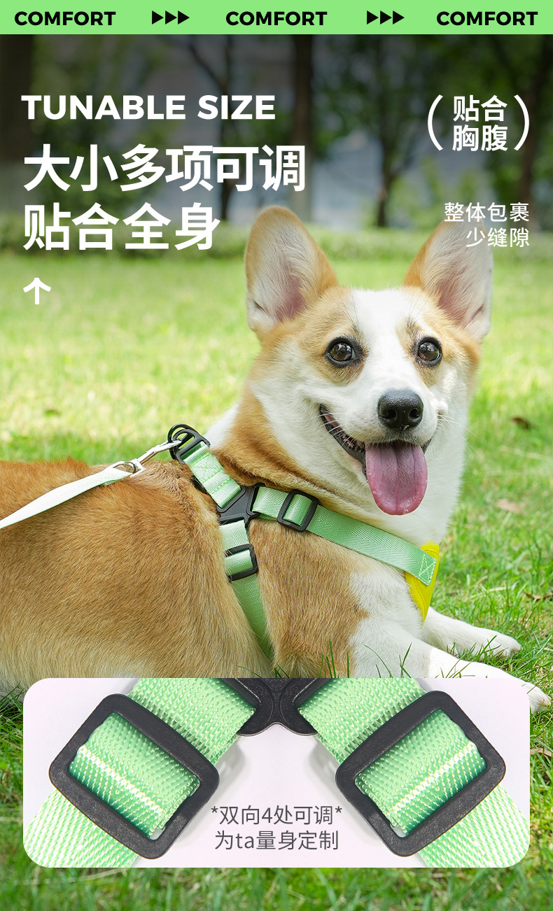 여름 새 개 견인 밧줄 마카롱 더블 콘트라스트 컬러 애완 동물 가슴 스트랩 조정 가능한 조끼 개 워킹 로프