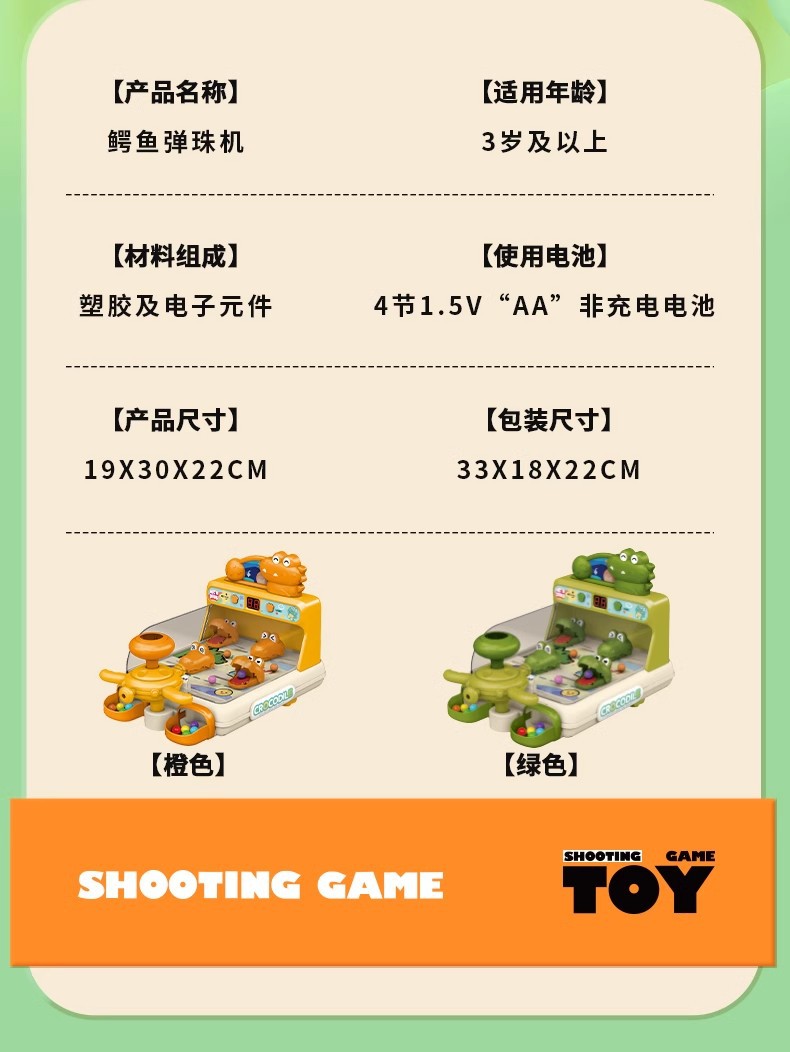 • [정품 선물 상자] 악어 핀볼 머신-오렌지 20구슬 "배터리 버전"