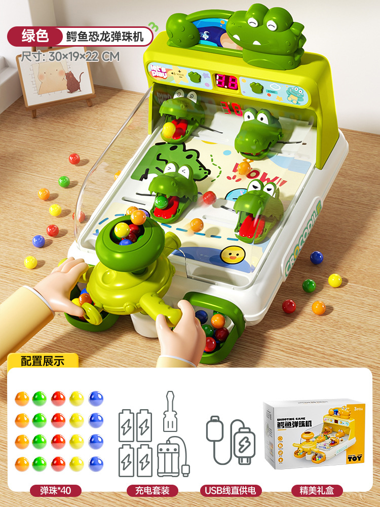 • [정품 선물 상자] 악어 핀볼 머신 - 그린 40구슬 "충전식 버전"