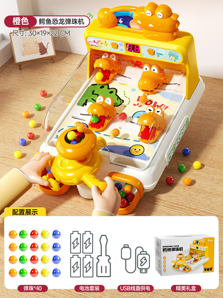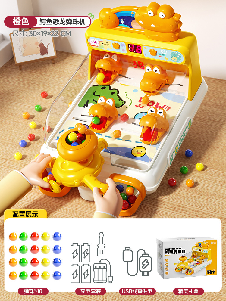 • [정품 선물 상자] 악어 핀볼 머신-오렌지 40구슬 "충전식 버전"