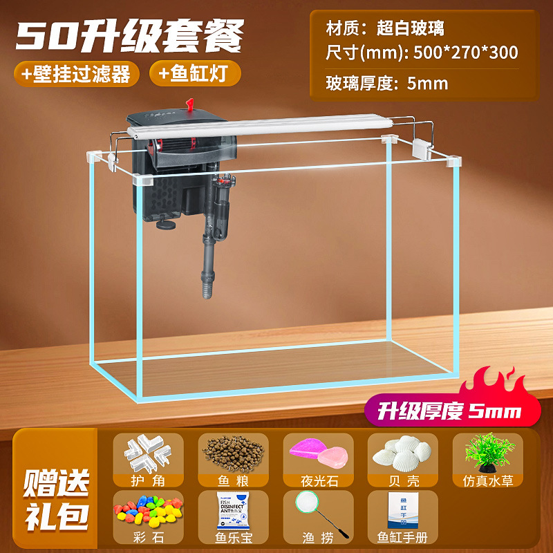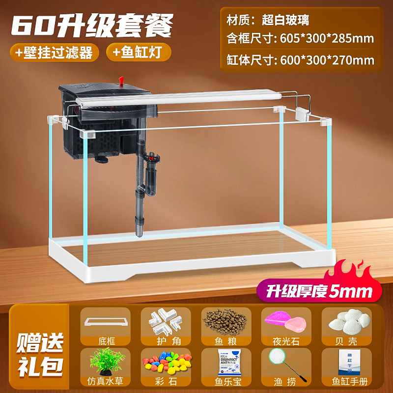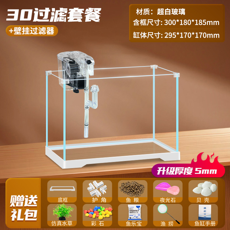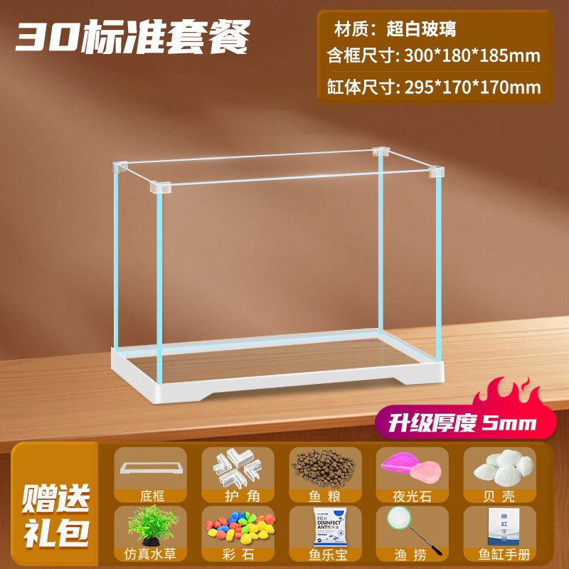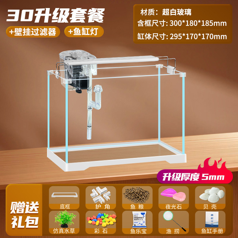 물고기 탱크 슈퍼 화이트 유리 탱크 작은 거실 먹이 관상용 물고기 수족관 생태 데스크탑 탱크 가정용 물 잔디 도매