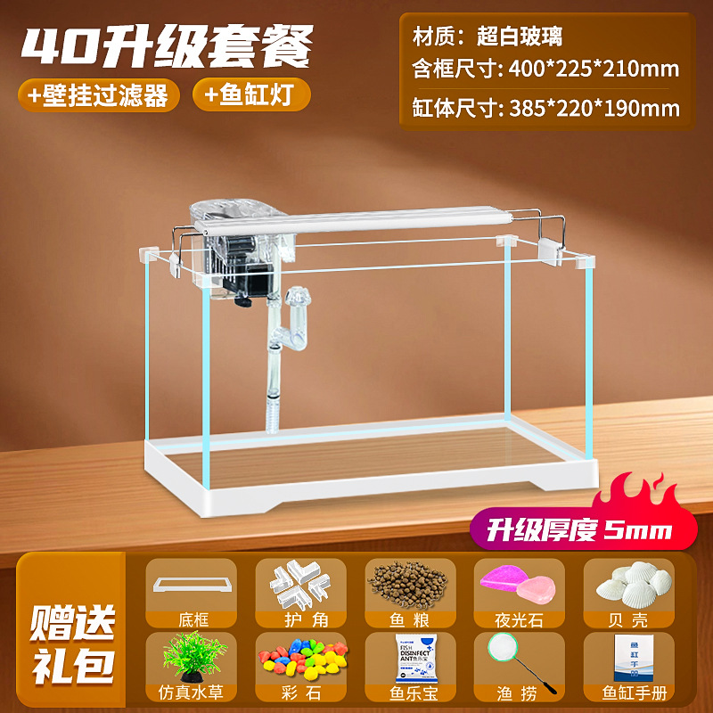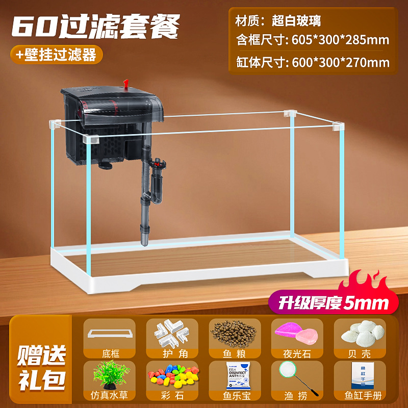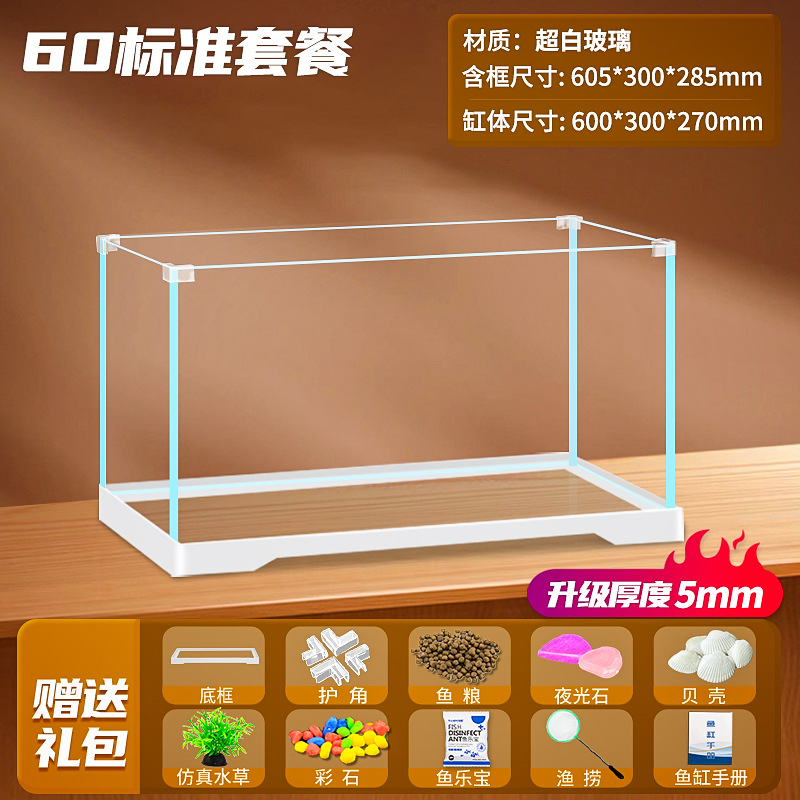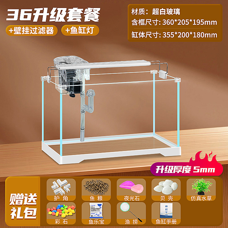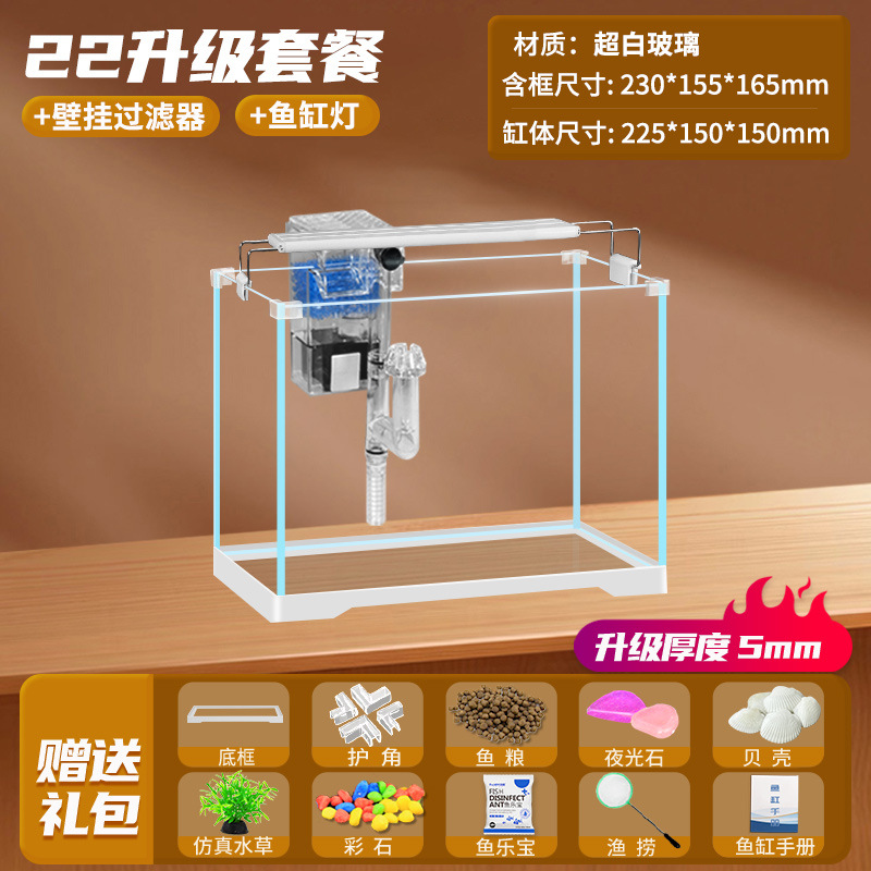 물고기 탱크 슈퍼 화이트 유리 탱크 작은 거실 먹이 관상용 물고기 수족관 생태 데스크탑 탱크 가정용 물 잔디 도매
