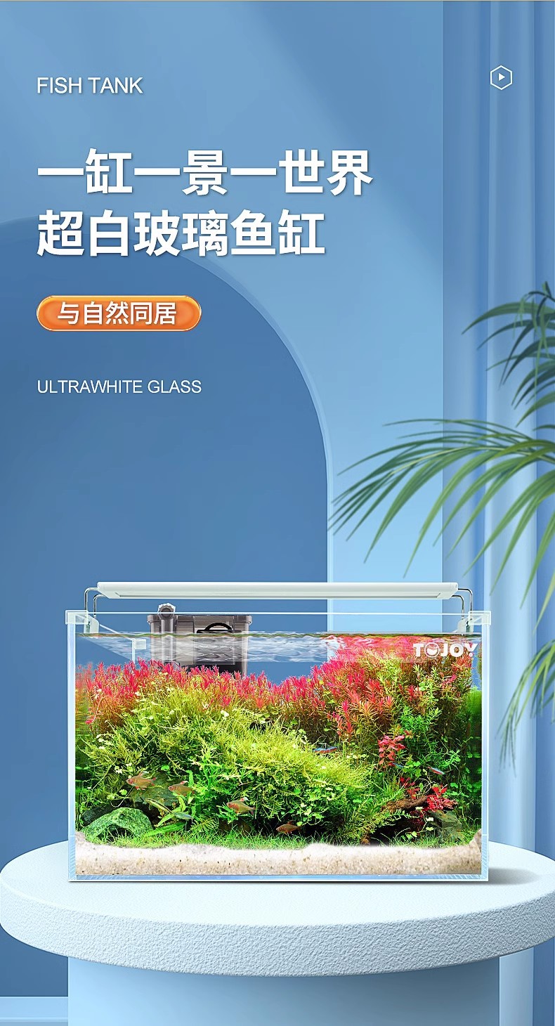물고기 탱크 슈퍼 화이트 유리 탱크 작은 거실 먹이 관상용 물고기 수족관 생태 데스크탑 탱크 가정용 물 잔디 도매스토어 가기