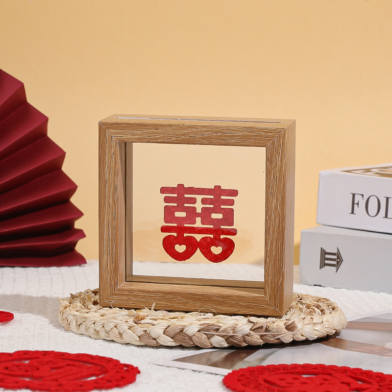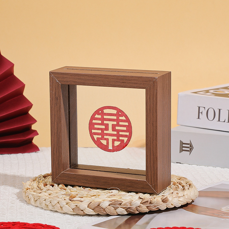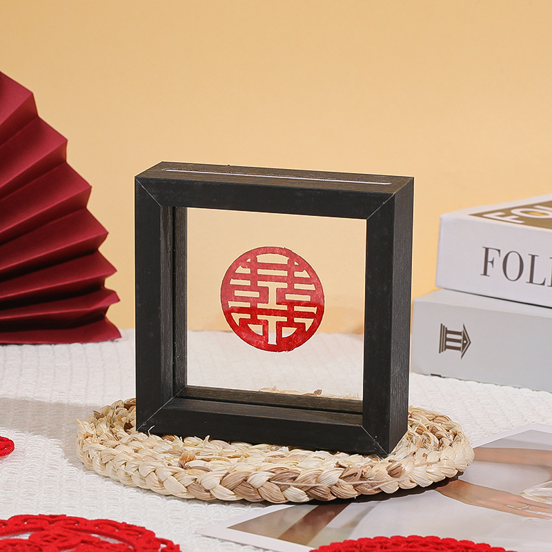 창조적 인 행복한 캐릭터 종이 컷 양면 투명 유리 사진 프레임 수제 나무 광장 4 인치 678 인치 잎 조각 표본 프레임