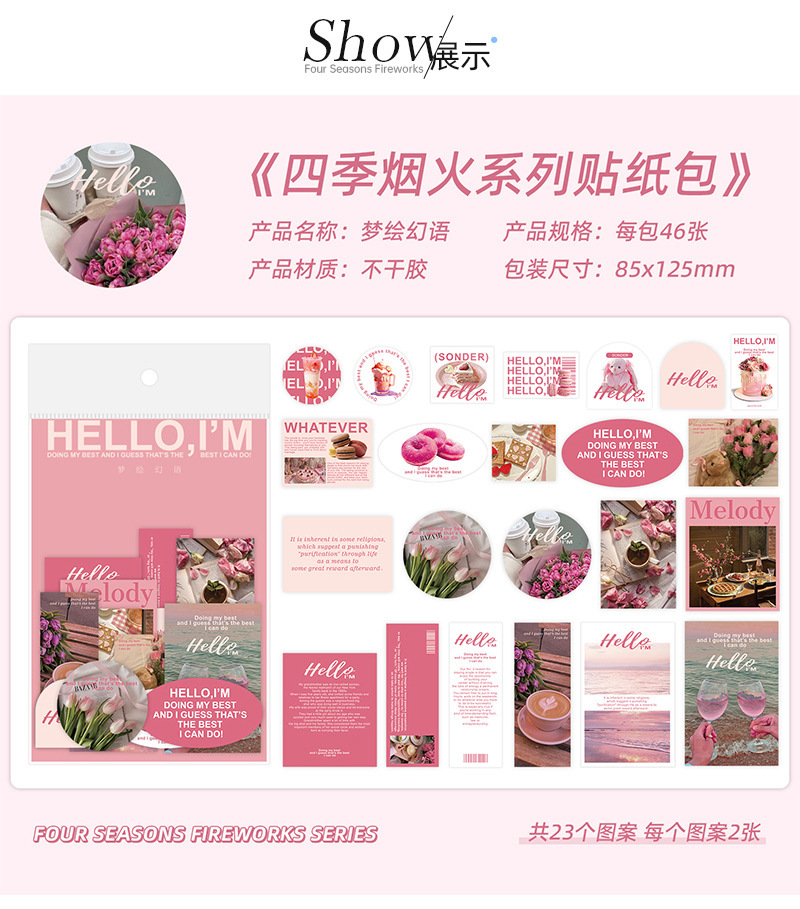 Xinqi 새로운 사계절 불꽃 놀이 시리즈 스티커 가방 예술적 Ins 잡지 스타일 크리에이티브 콜라주 핸드북 소재 가방 스티커