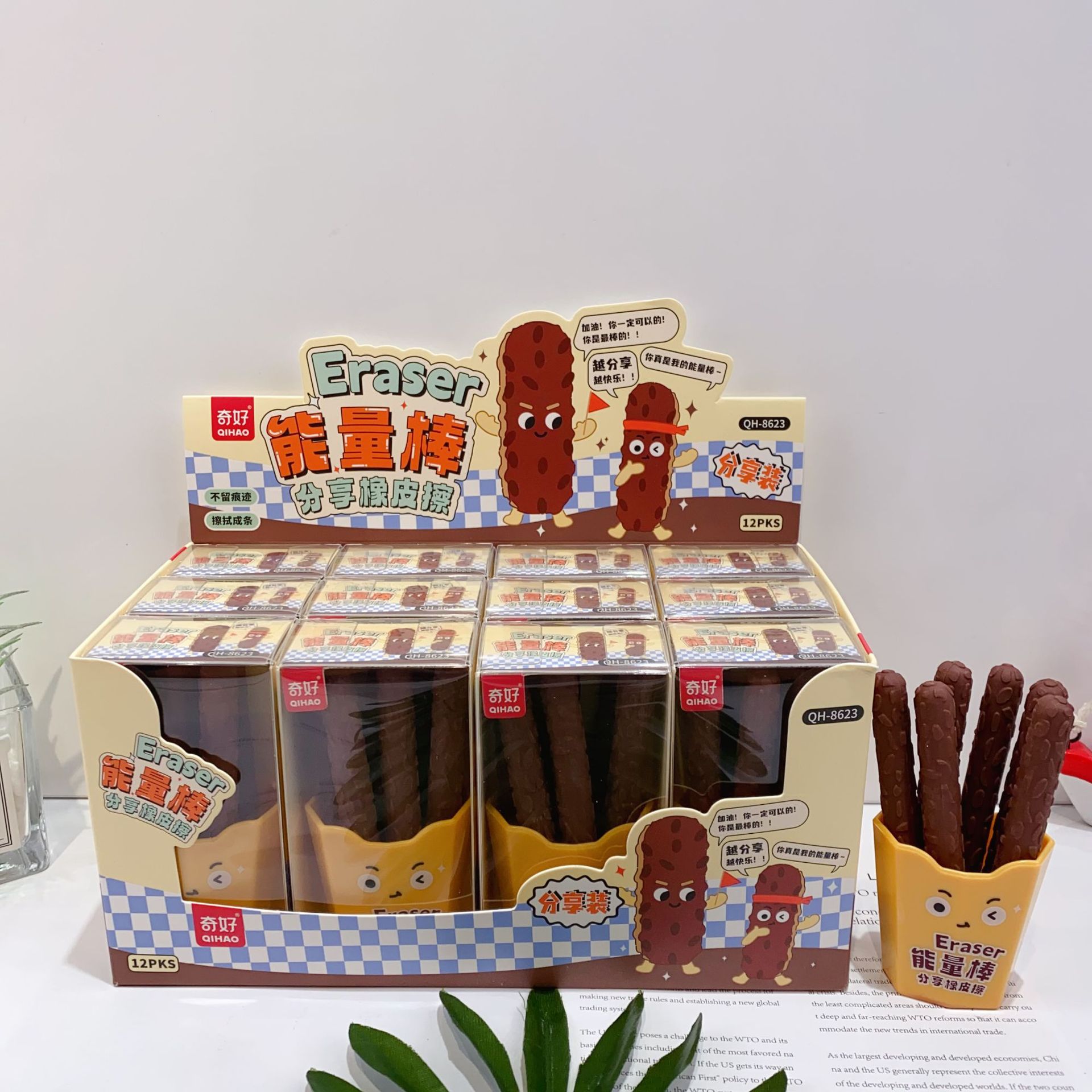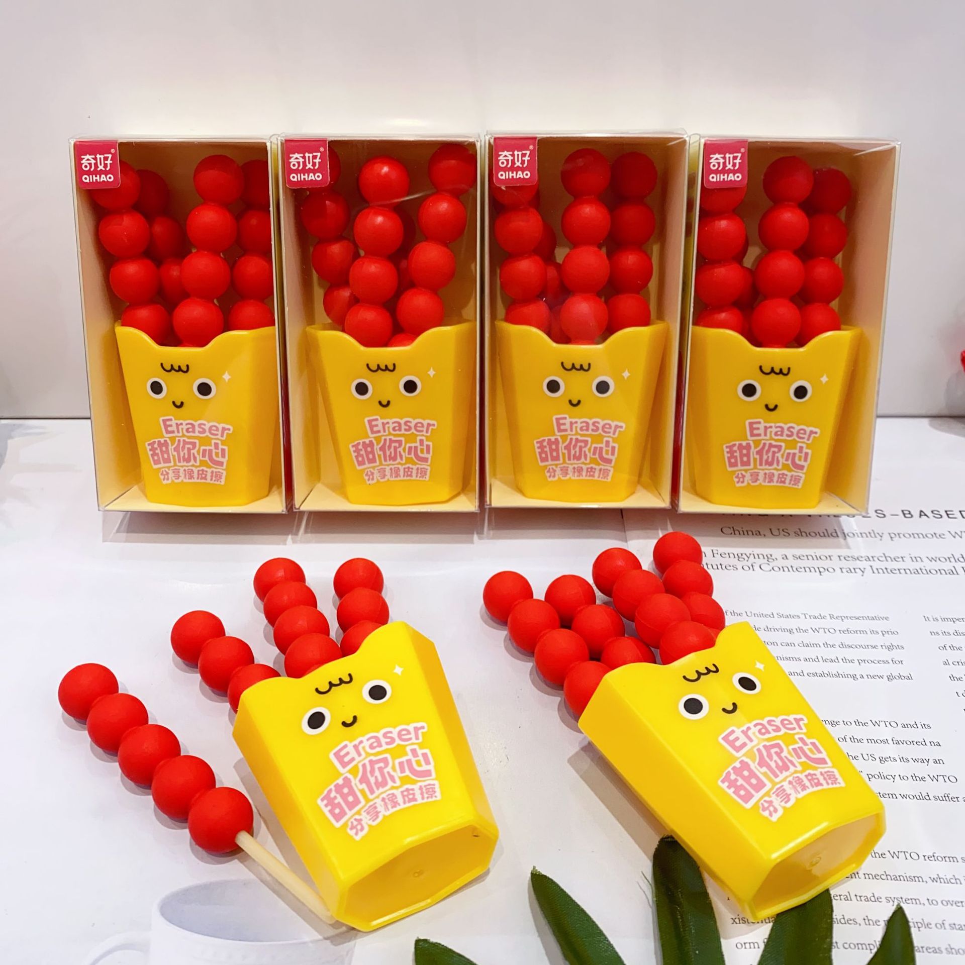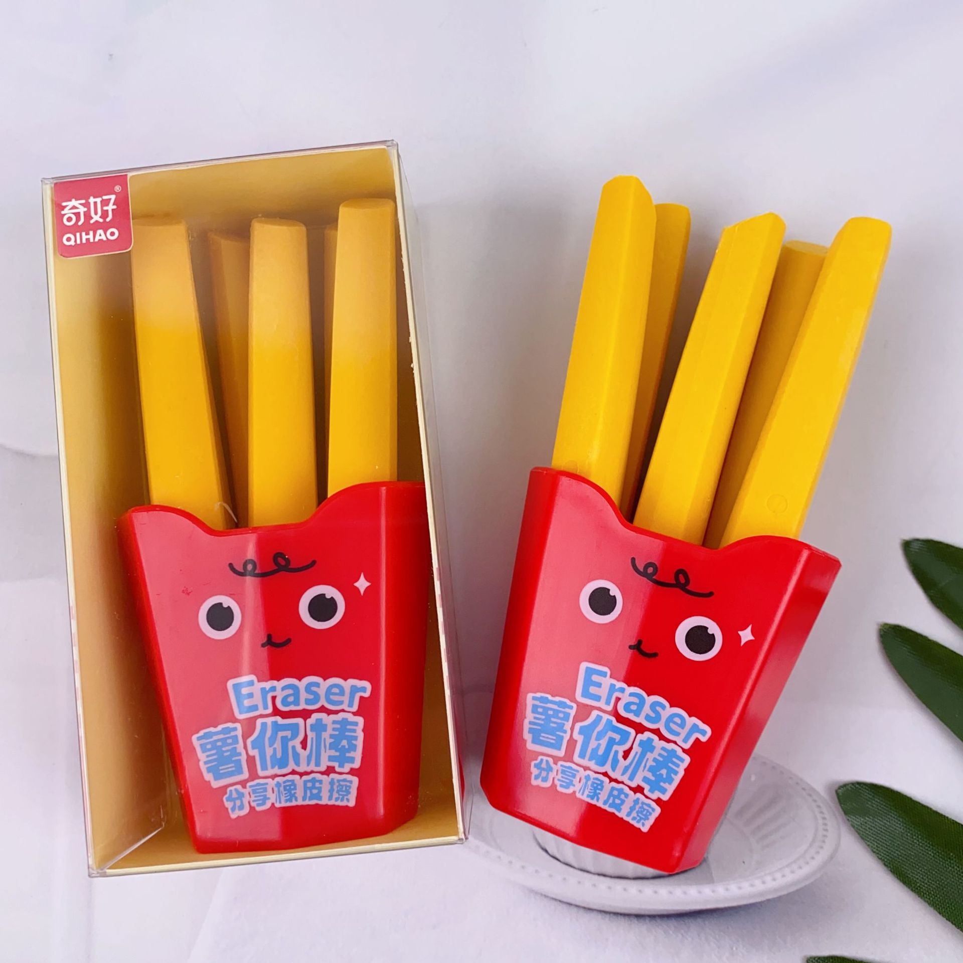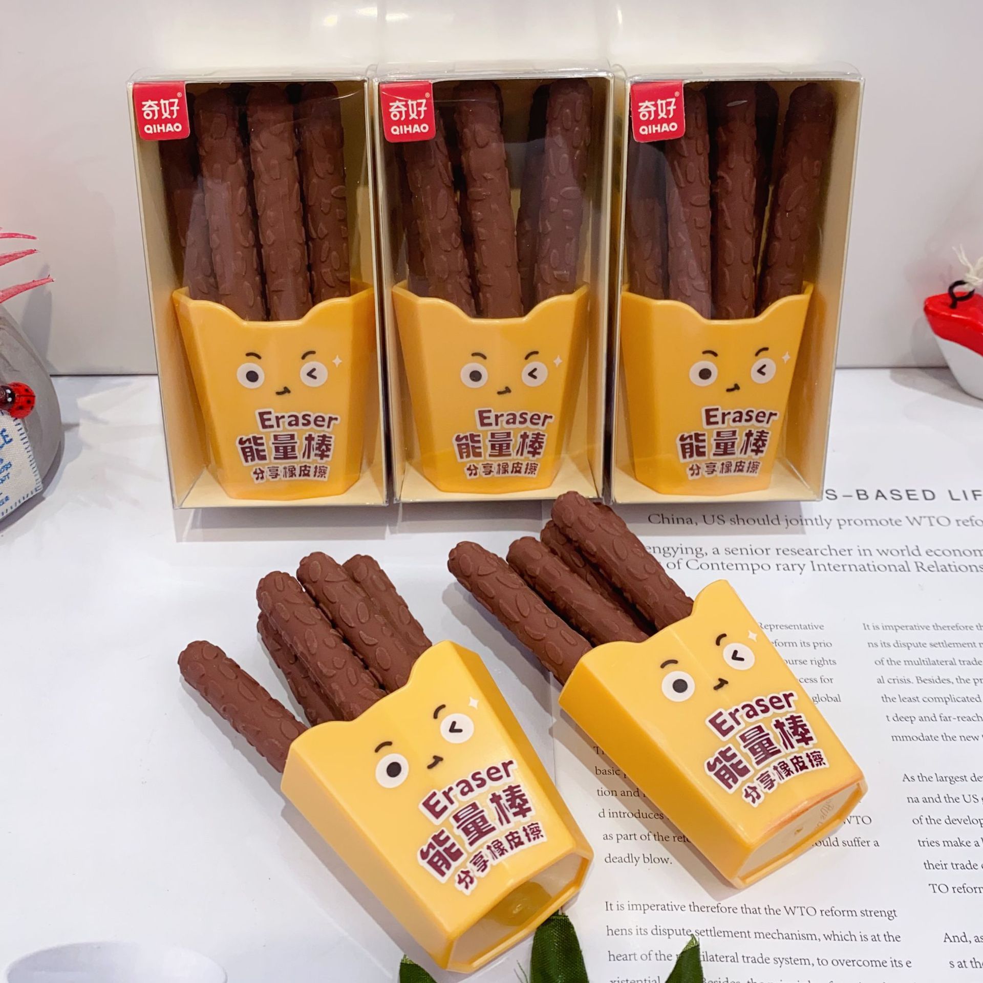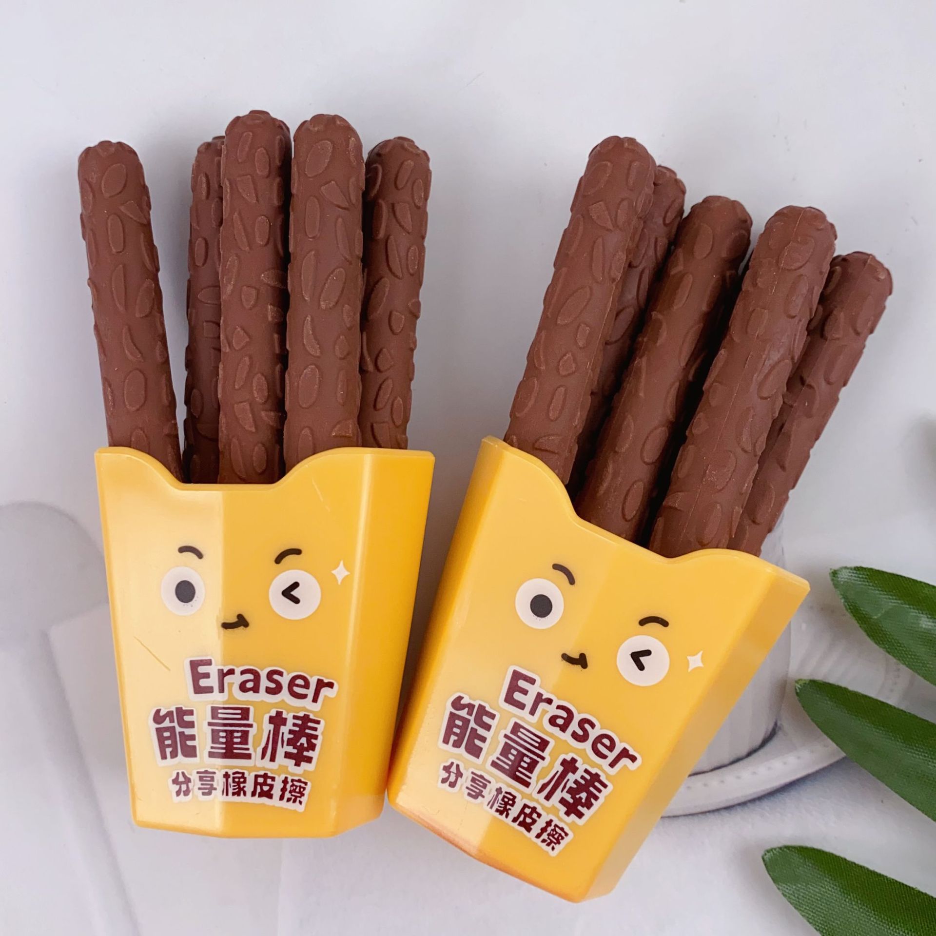 새로운 감자 튀김 초콜릿 바 모양 공유 지우개 세트 귀여운 지우개는 흔적없이 부스러기없이 깨끗합니다.스토어 가기