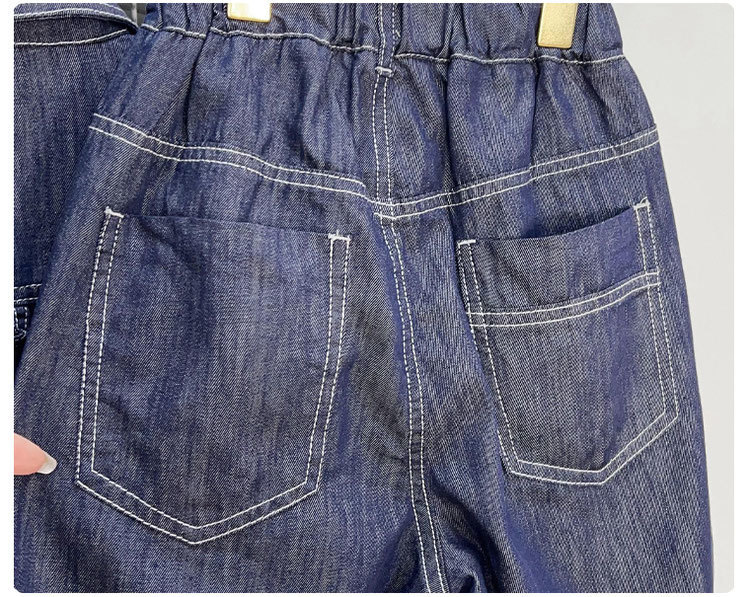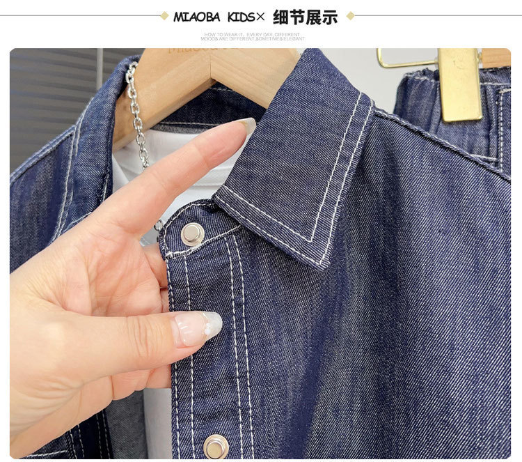 소년 데님 세트 2024 새로운 어린이 잘 생긴 유행 거리 탑 넓은 다리 바지 2 조각 세트 트렌디