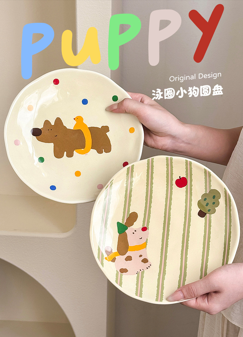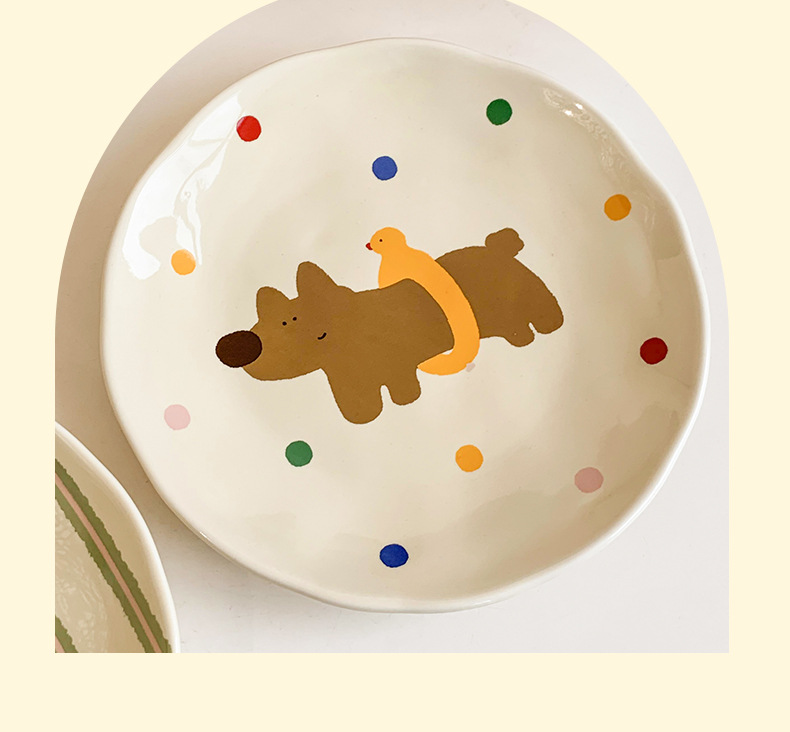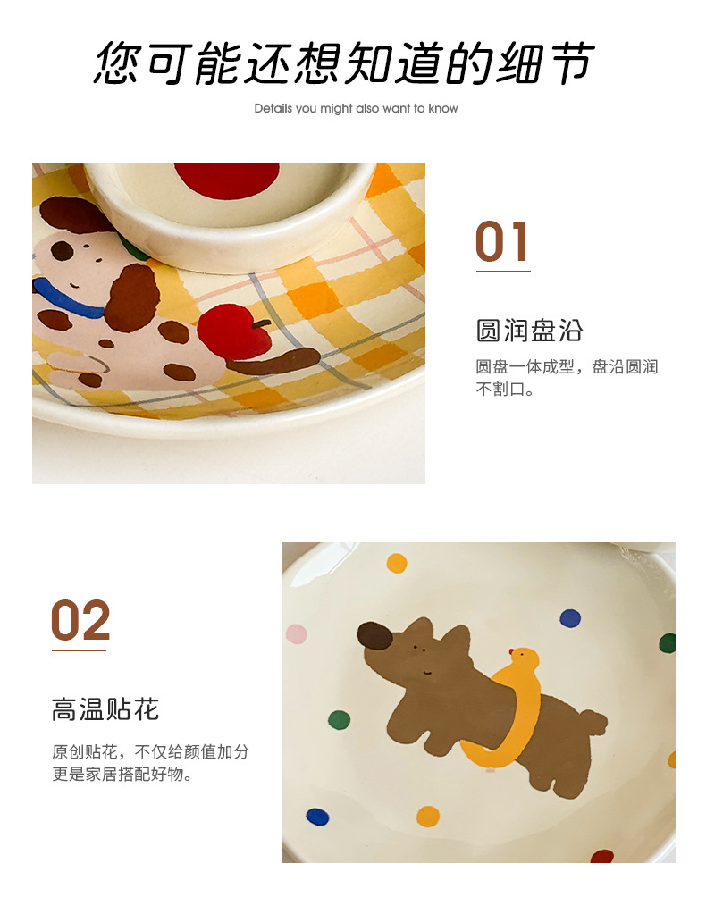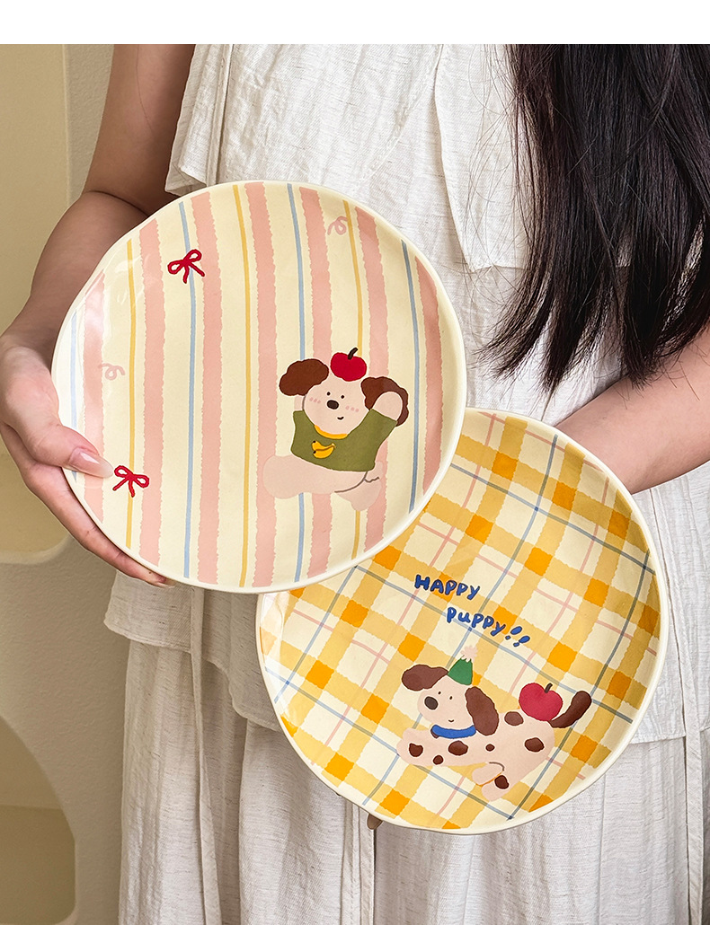 장난 꾸러기 강아지 시리즈 플레이트 가정용 접시 세라믹 고급 감각 웨스턴 푸드 플레이트 크림 스타일 Instagram 플랫 플레이트 조합
