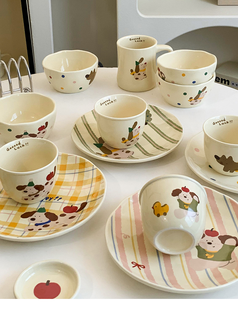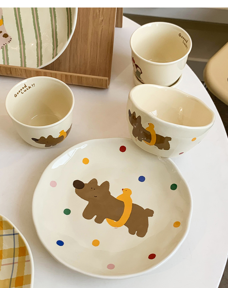 장난 꾸러기 강아지 시리즈 플레이트 가정용 접시 세라믹 고급 감각 웨스턴 푸드 플레이트 크림 스타일 Instagram 플랫 플레이트 조합스토어 가기