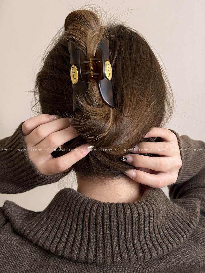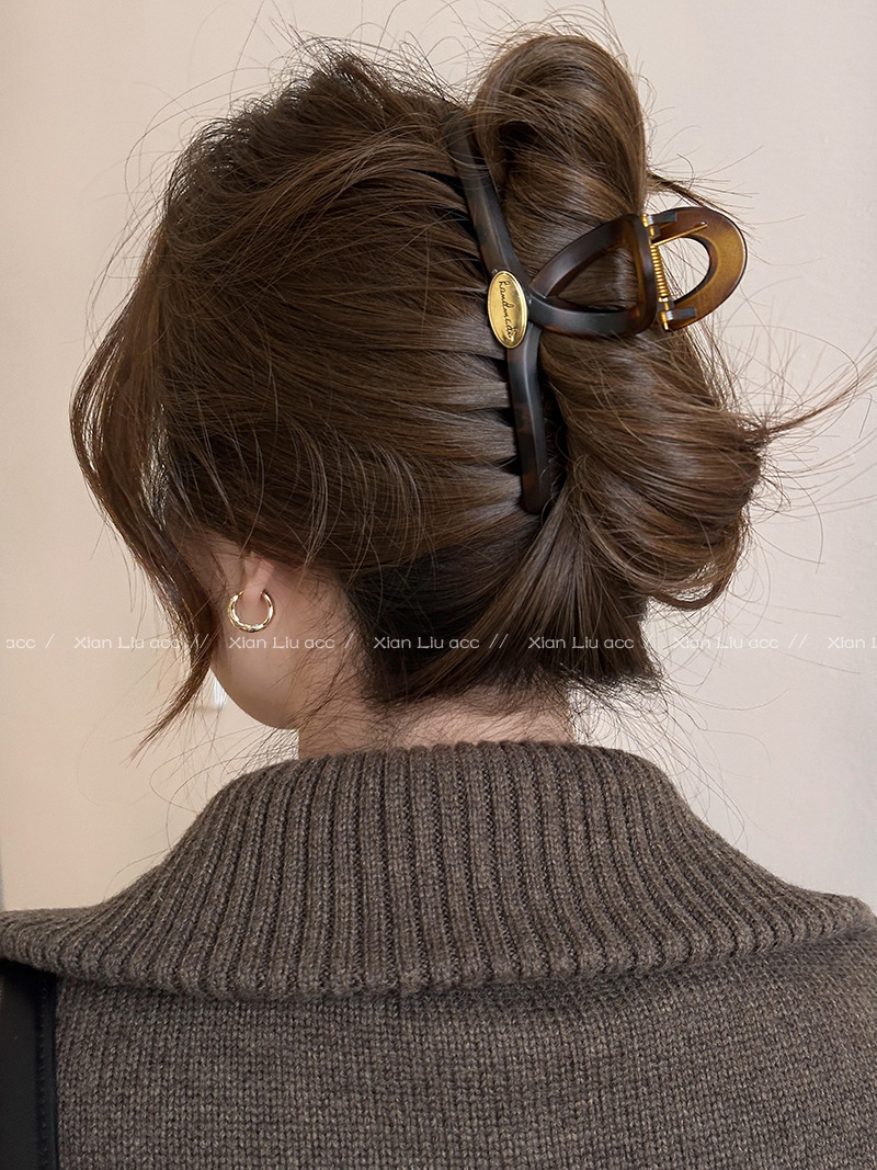 호크스 빌 컬러 백 헤드 헤어 클립 여성의 2024 새로운 하이 엔드 우아한 상어 클립 대형 헤어 클립 헤드웨어스토어 가기